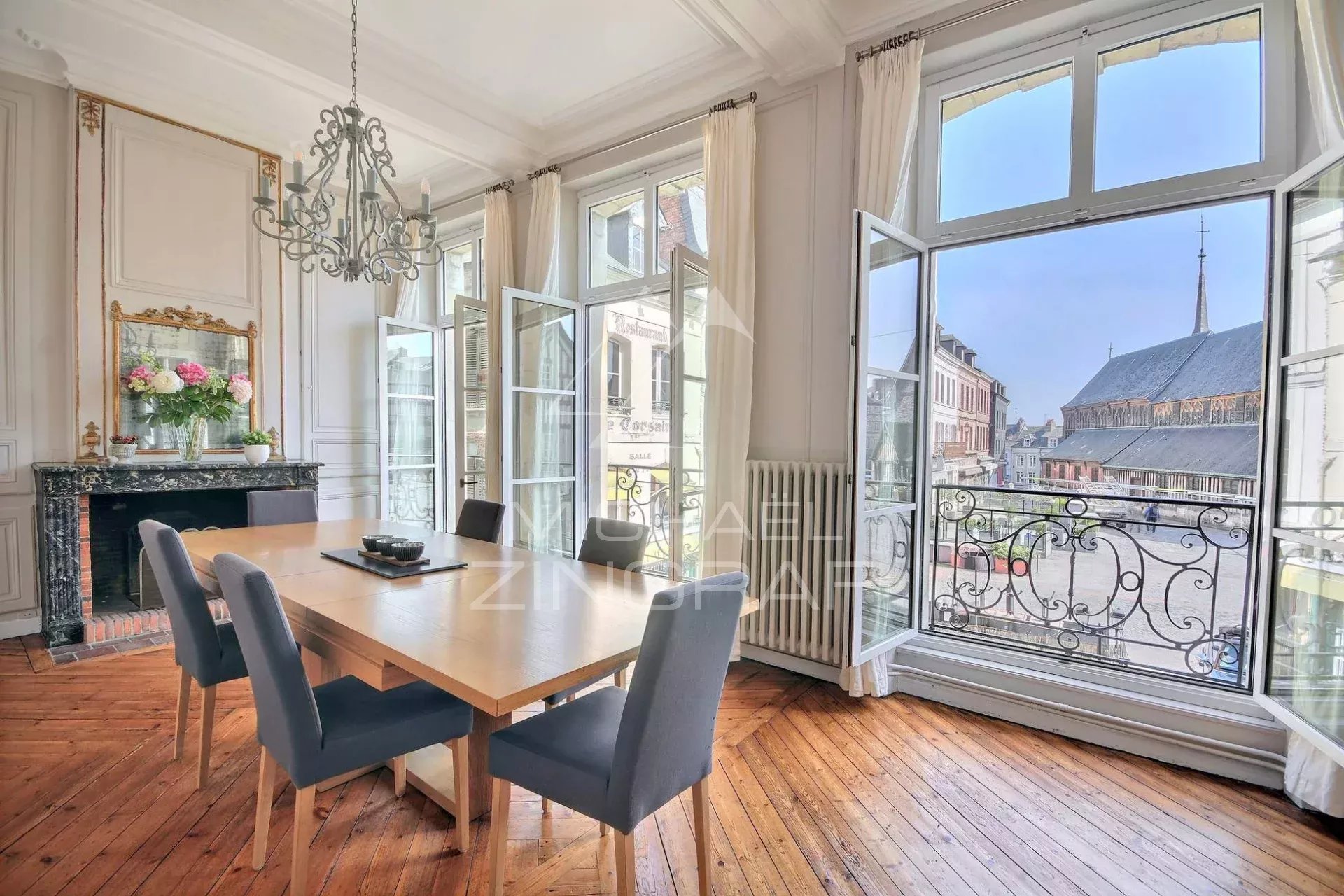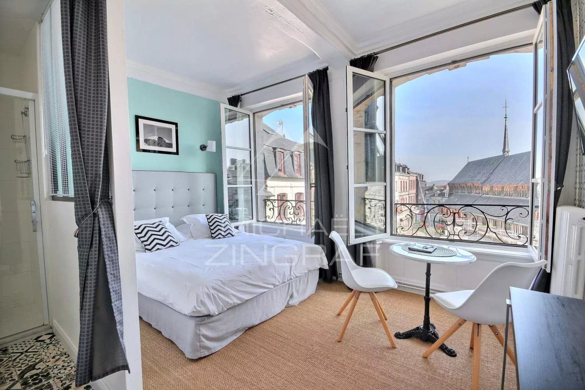 Les grandes fenêtres procurent beaucoup de lumière, une magnifique vue sur l’Eglise Sainte Catherine, Joyau d’Honfleur.