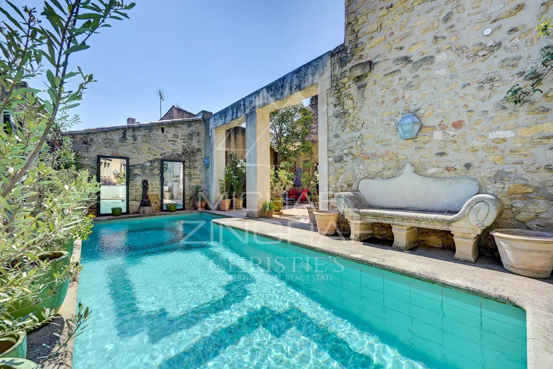 Vous pourrez aussi profiter de deux immenses terrasses magnifiques, dont une avec une belle piscine, d'une cursive et d'un solarium à la vue panoramique sur le villages et la campagne environnante.