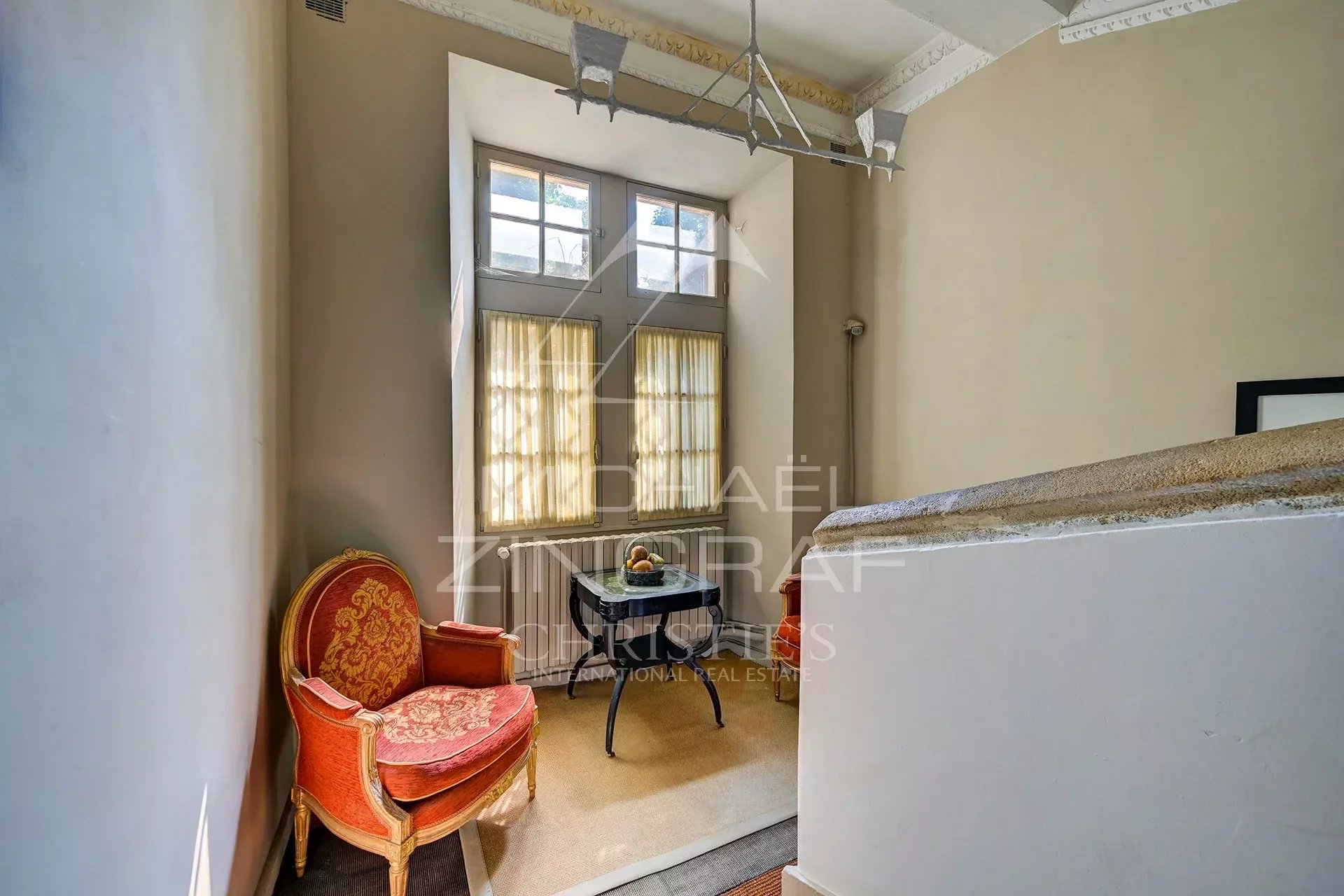 S'articulant autour d'une cour centrale, porté par un magnifique escalier classé aux monuments historiques, le bâtiment avec une architecture en U se développe sur 5 niveaux proposant des espaces de réception et des appartements privatifs par étage.