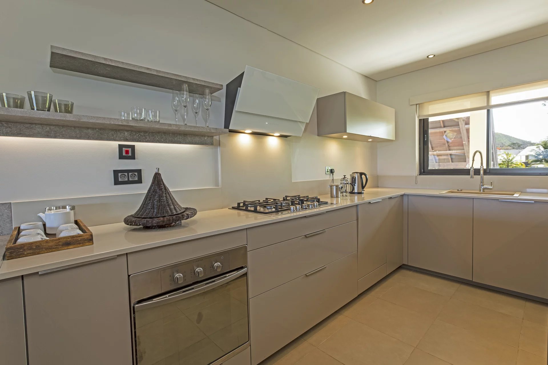 Une belle pièce salon-salle à manger avec cuisine américaine équipée s’ouvrant sur l’extérieur. La terrasse propose un coin salon, des transats et une table à manger ainsi qu’un bassin à débordement d’où vous pourrez admirer le paysage qui s’offre à vous.