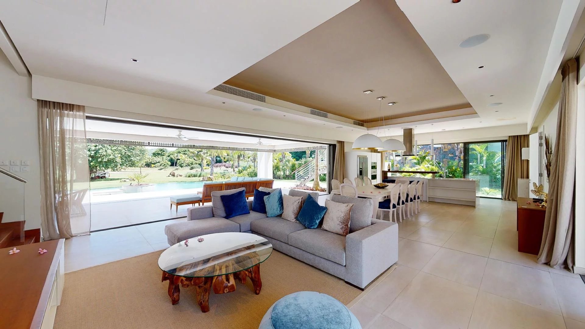 Moderne et récemment construite, cette spacieuse villa de 580 m² est implantée sur un terrain de 2 023 m². Grâce à de larges baies vitrées, les espaces de vie intérieurs et extérieurs s’harmonisent parfaitement. Baignée de lumière naturelle et aérée tout au long de la journée, elle offre un cadre idéal pour se détendre.