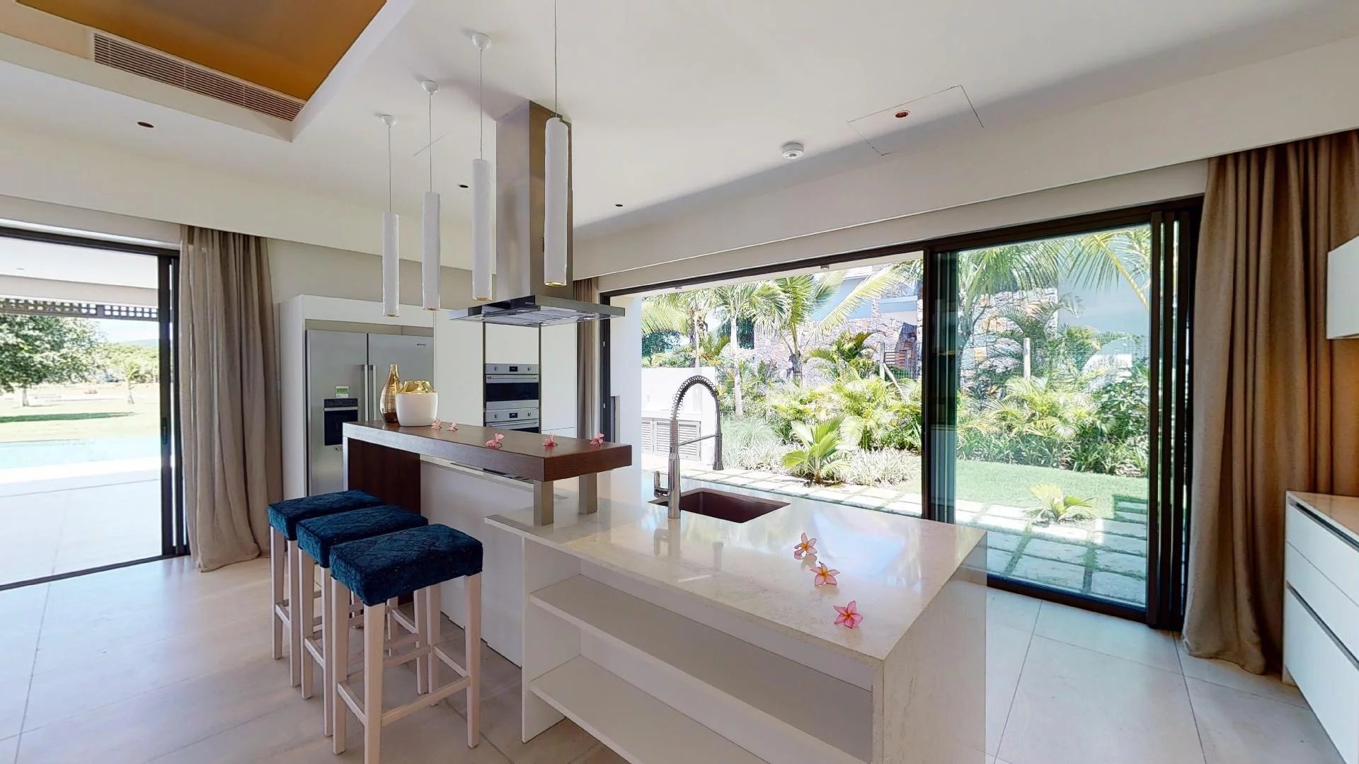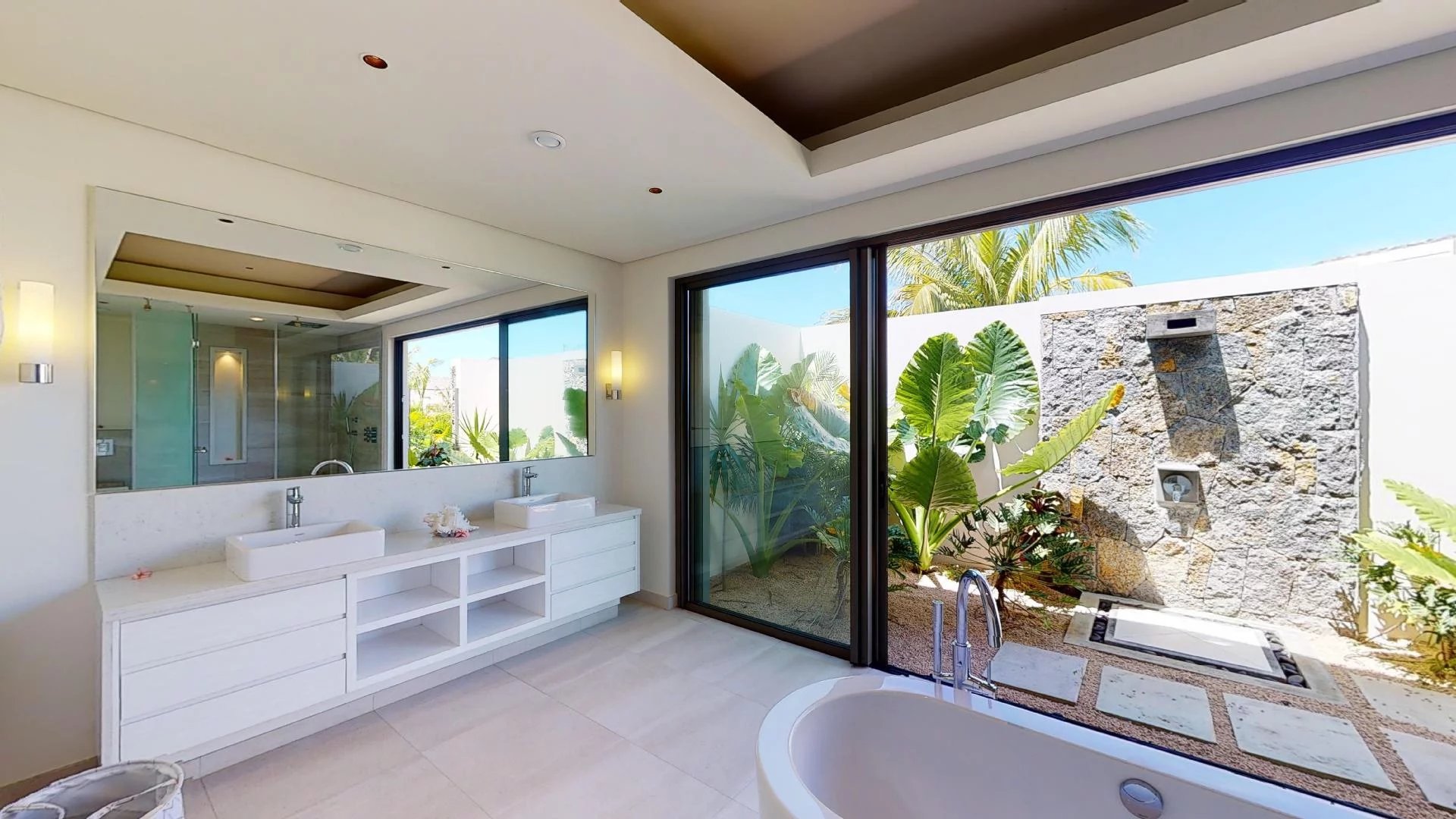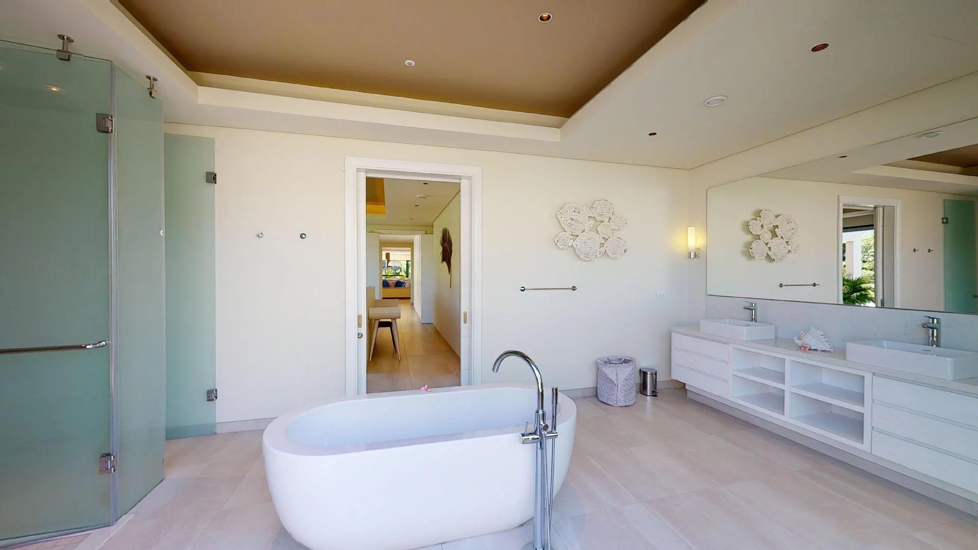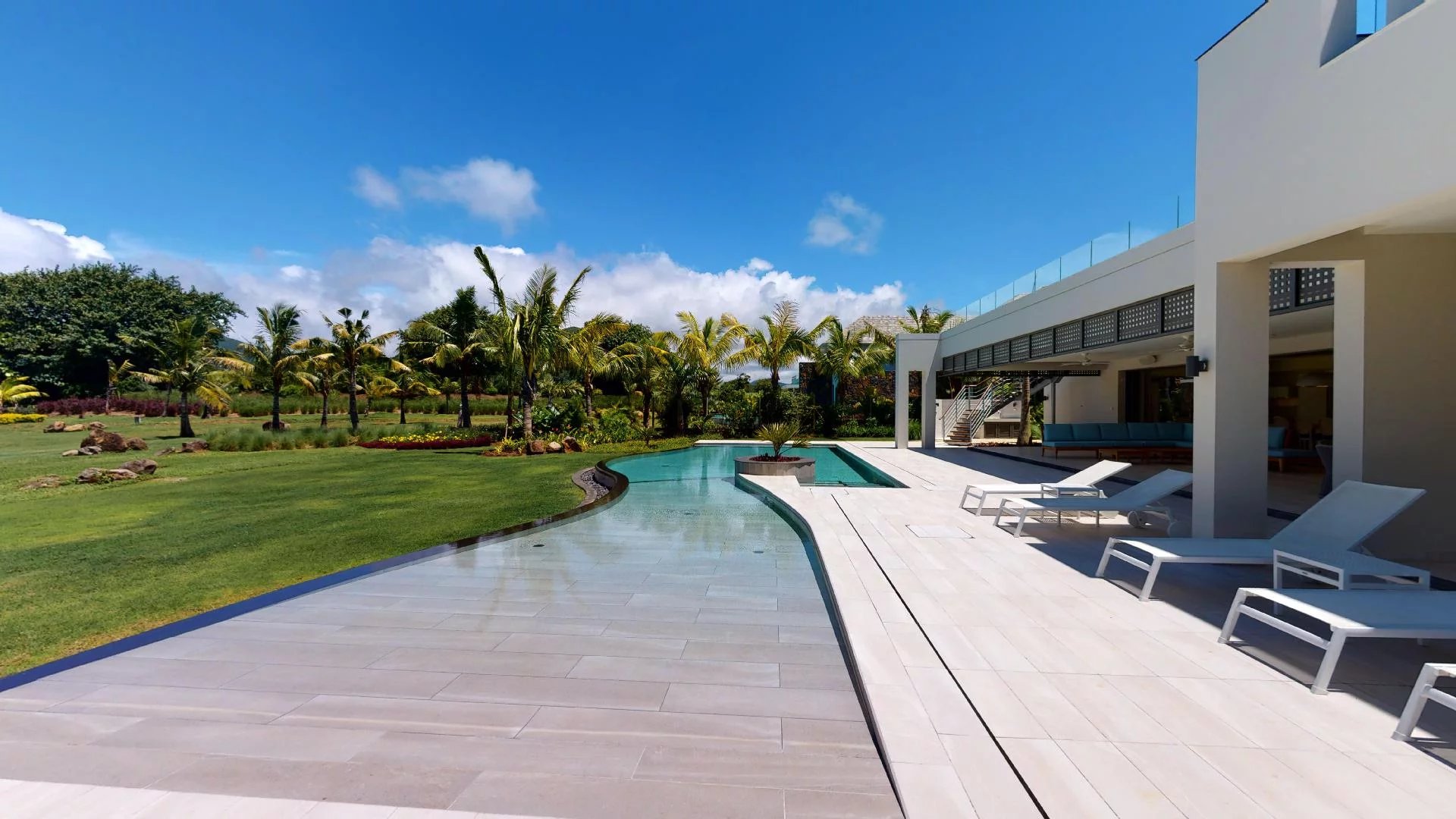 La villa comprend 4 chambres en suite avec la possibilité d’en ajouter une cinquième, ainsi qu’un espace dédié au personnel.