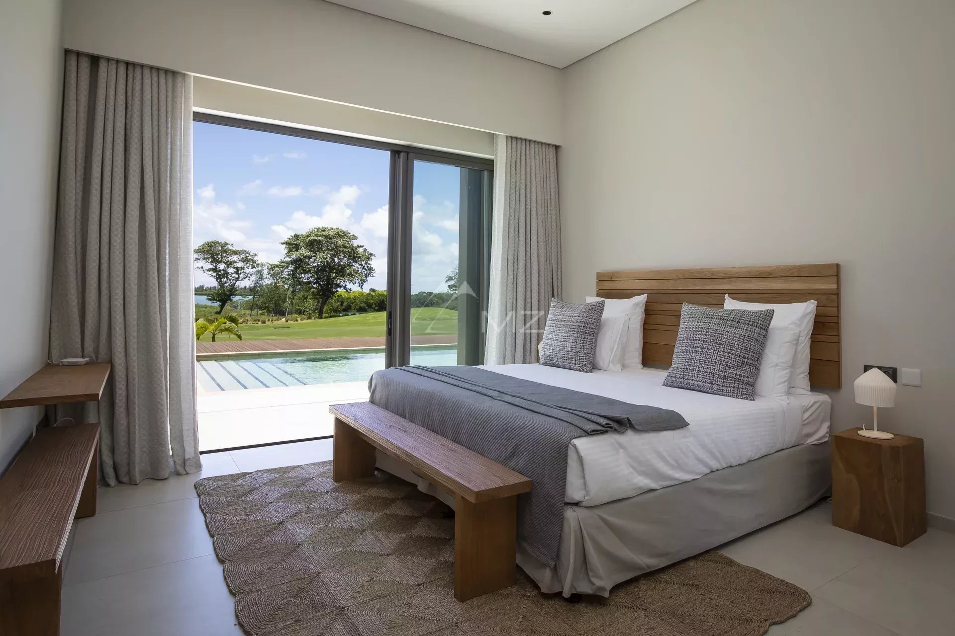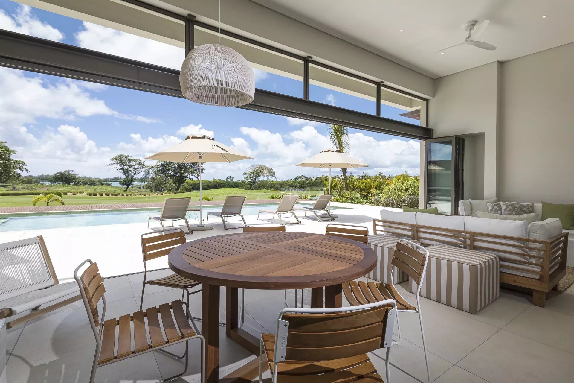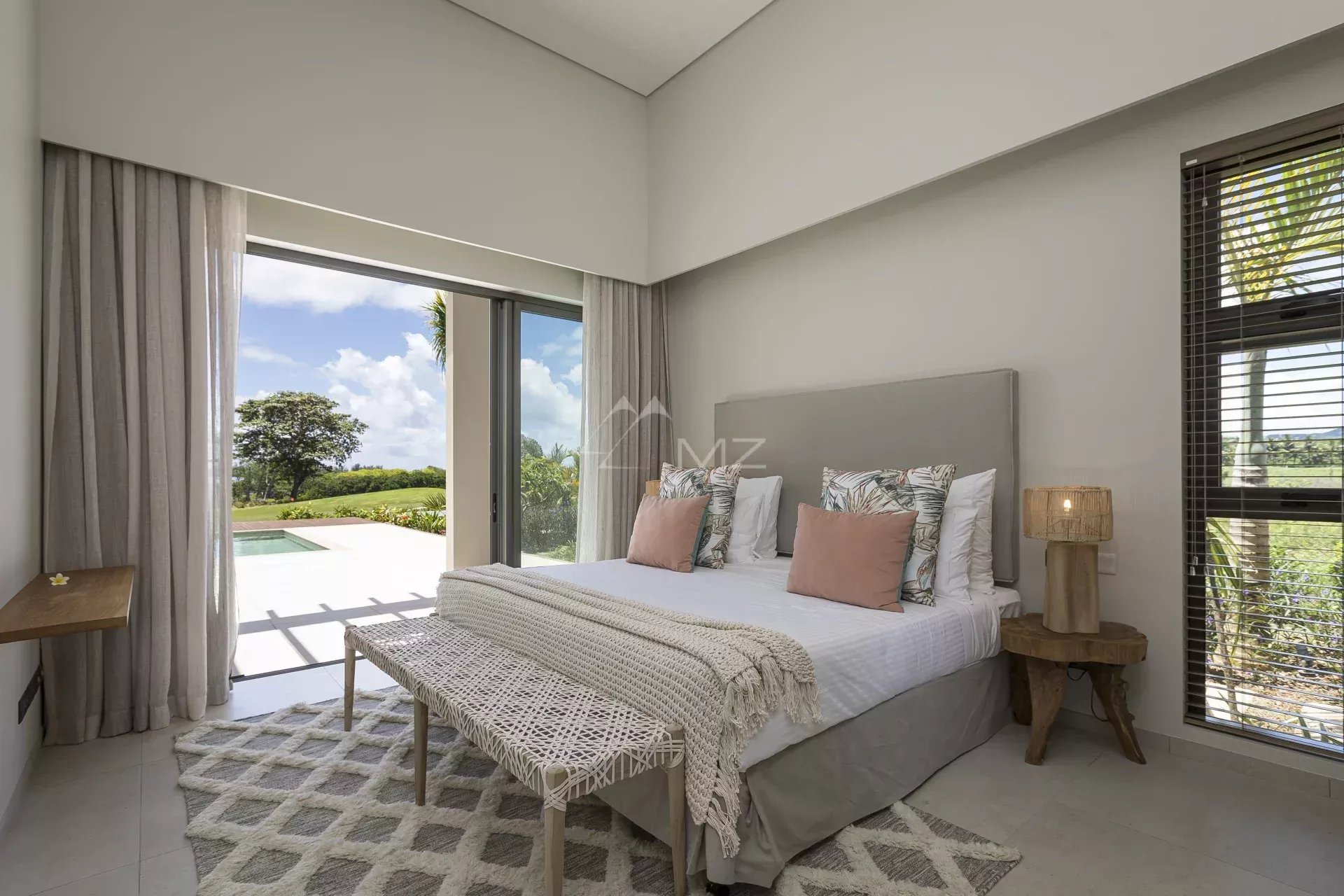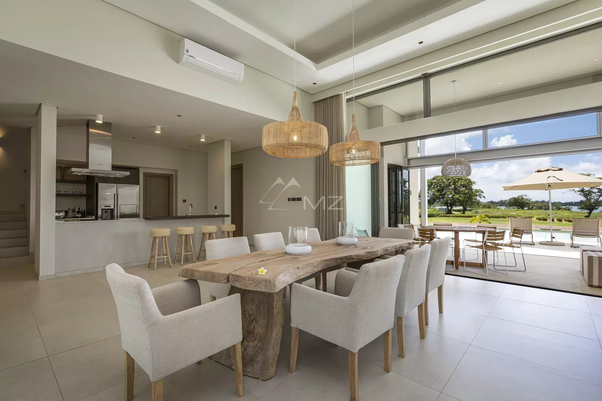 Blotti au cœur du parcours de golf de renommée internationale, ce quartier propose un cadre de vie empreint de sérénité. Votre villa de luxe, sur un terrain en pleine propriété, vous offrira une vue sur les fairways dessinés par la légende Ernie Els et sur la chaîne de montagnes Bambou.Cette villa de 304 m2 très récente possède 4 chambres avec salle de bains en suite. Située au bord du golf, elle offre de magnifiques perspectives sur le parcours et sur le lagon qui lui font face. Construite sur un terrain partagé de 2 243 m2, cette villa jumelée aux hauteurs sous plafond remarquables offre des espaces de vie très lumineux, dont un grand salon-salle à manger avec cuisine américaine qui s'ouvrent sur une belle terrasse et une piscine aux larges dimensions. Elle est également dotée d’un toit-terrasse avec vue panoramique pour partager de superbes moments de convivialité en famille ou entre amis.