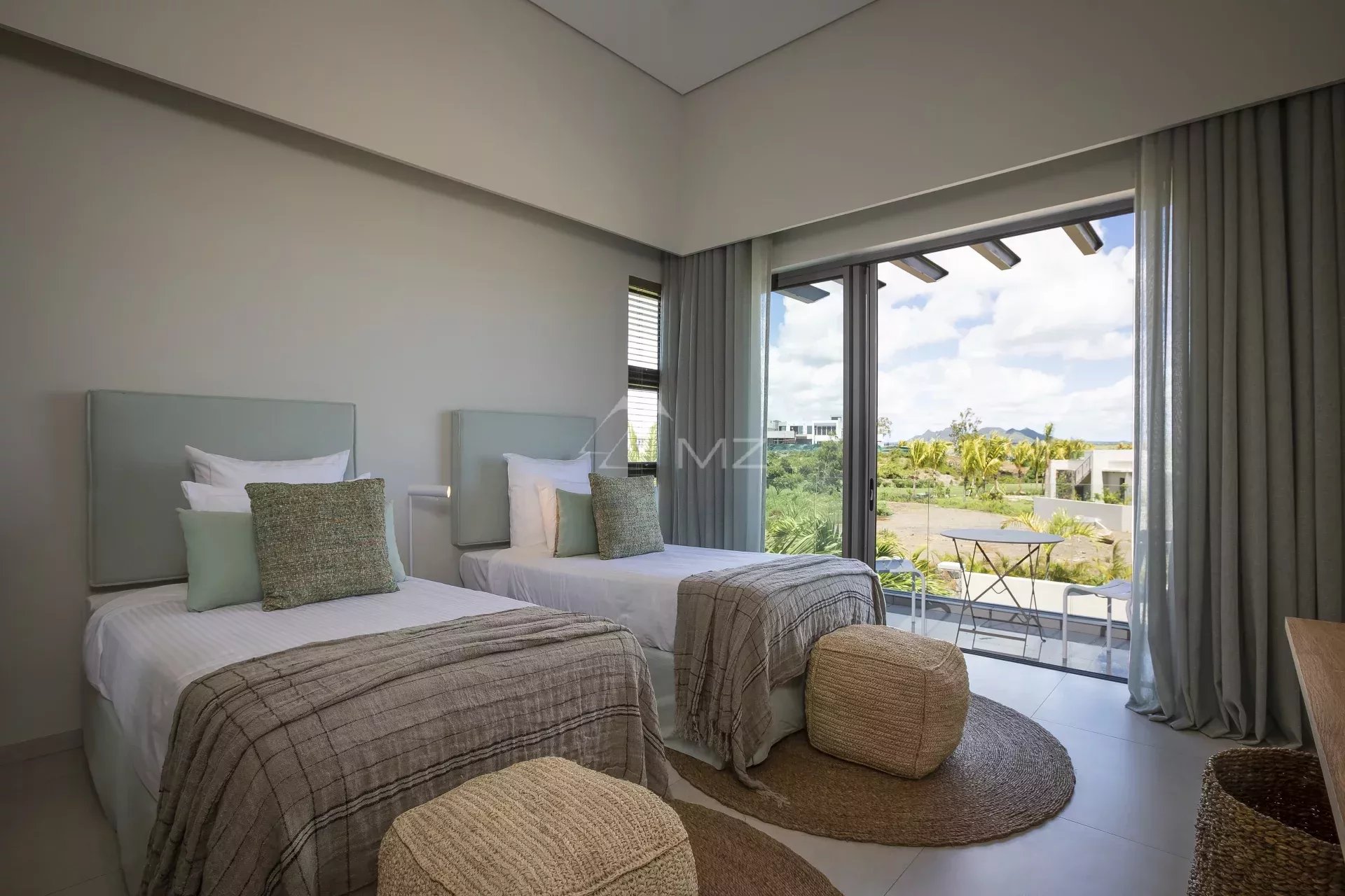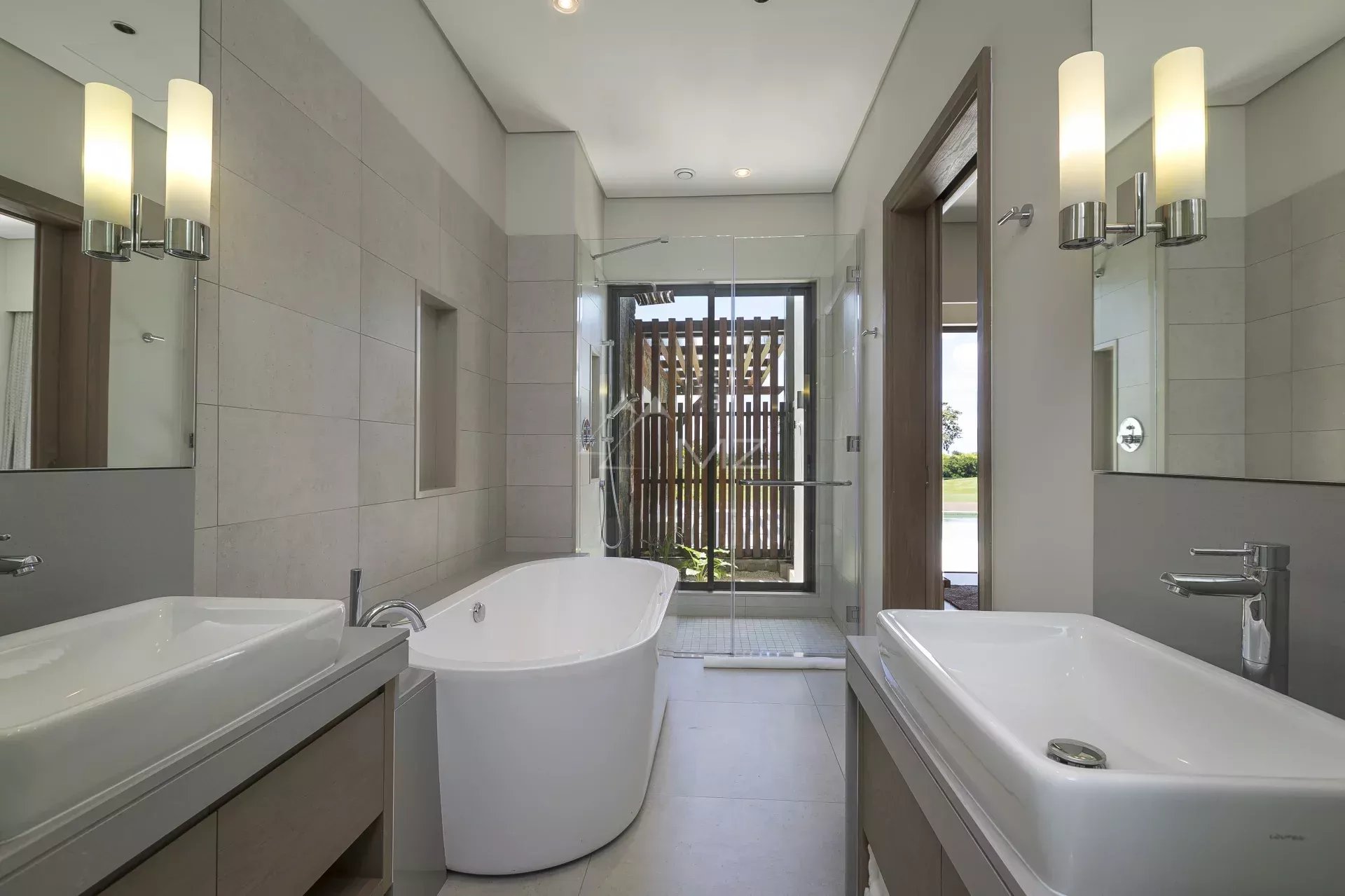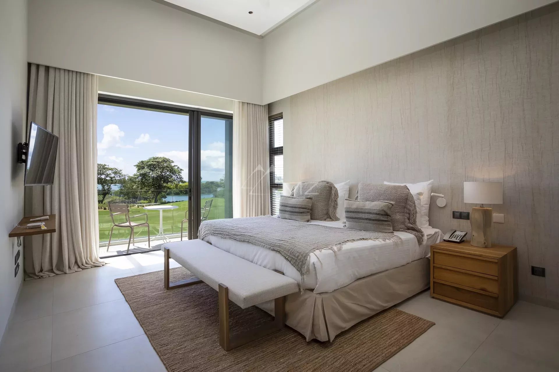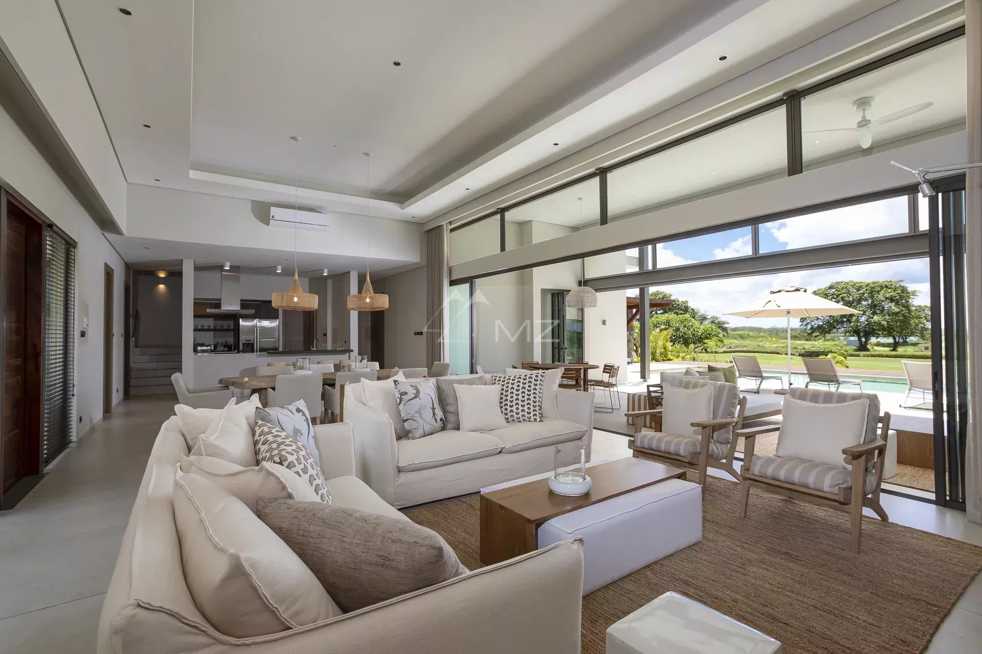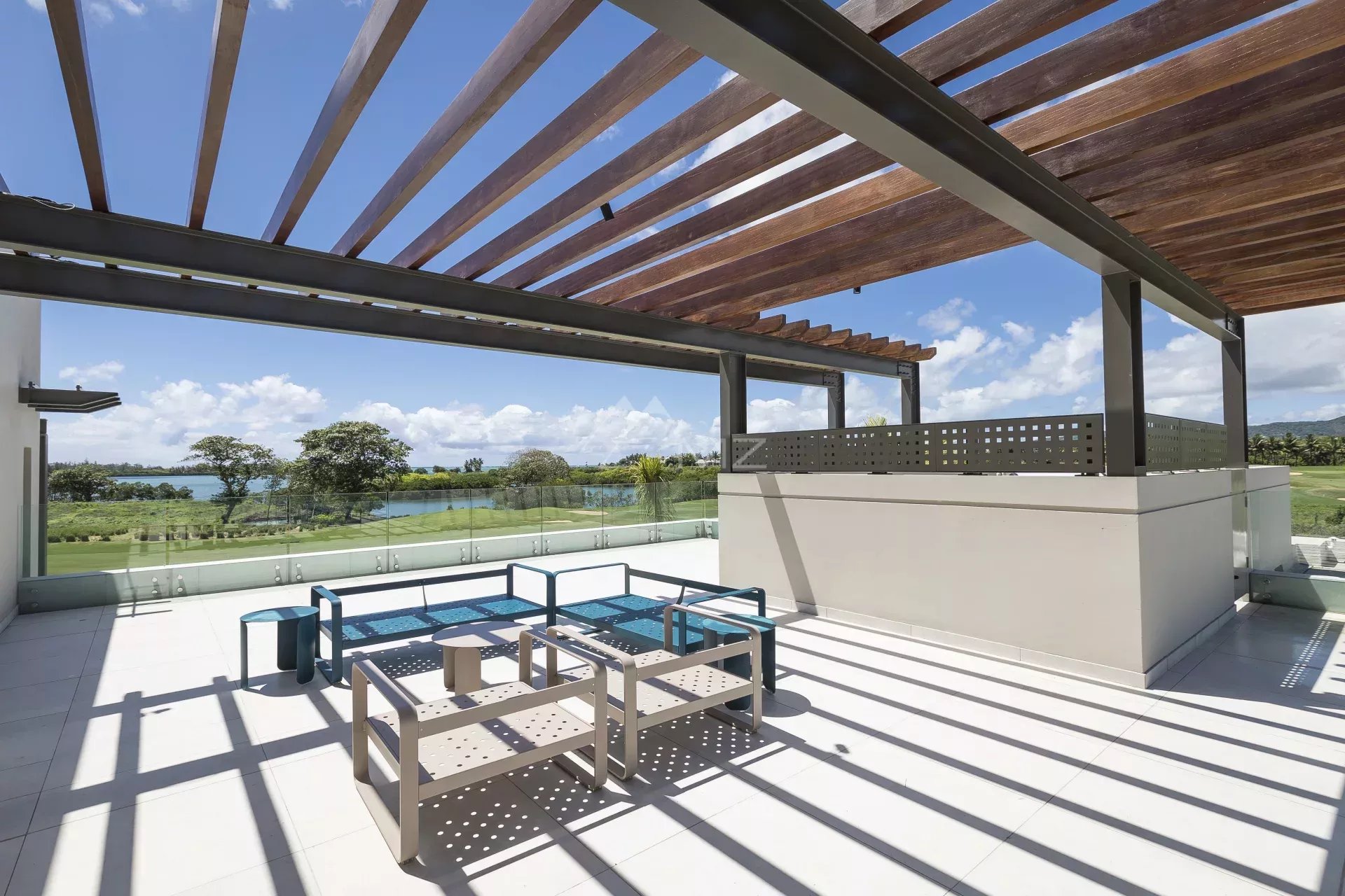 Blotti au cœur du parcours de golf de renommée internationale, ce quartier propose un cadre de vie empreint de sérénité. Votre villa de luxe, sur un terrain en pleine propriété, vous offrira une vue sur les fairways dessinés par la légende Ernie Els et sur la chaîne de montagnes Bambou.Cette villa de 304 m2 très récente possède 4 chambres avec salle de bains en suite. Située au bord du golf, elle offre de magnifiques perspectives sur le parcours et sur le lagon qui lui font face. Construite sur un terrain partagé de 2 243 m2, cette villa jumelée aux hauteurs sous plafond remarquables offre des espaces de vie très lumineux, dont un grand salon-salle à manger avec cuisine américaine qui s'ouvrent sur une belle terrasse et une piscine aux larges dimensions. Elle est également dotée d’un toit-terrasse avec vue panoramique pour partager de superbes moments de convivialité en famille ou entre amis.