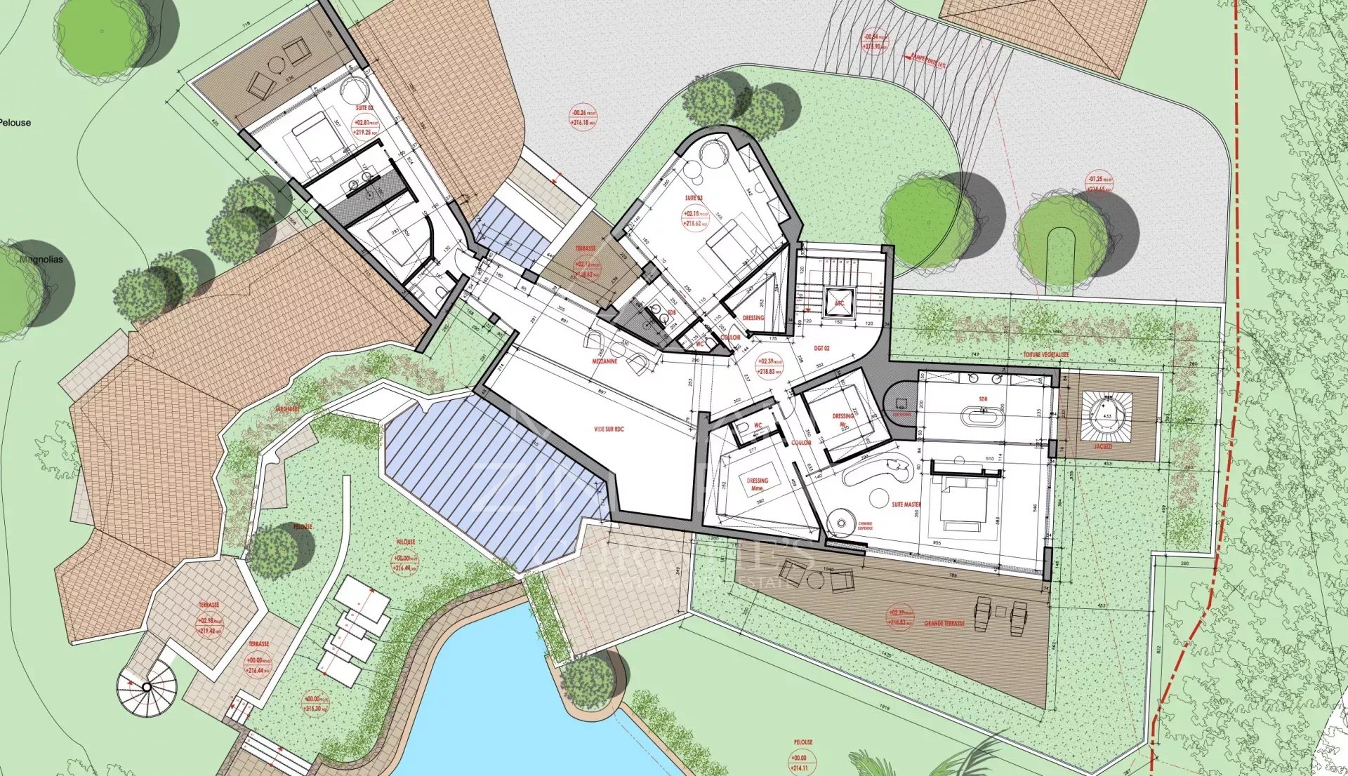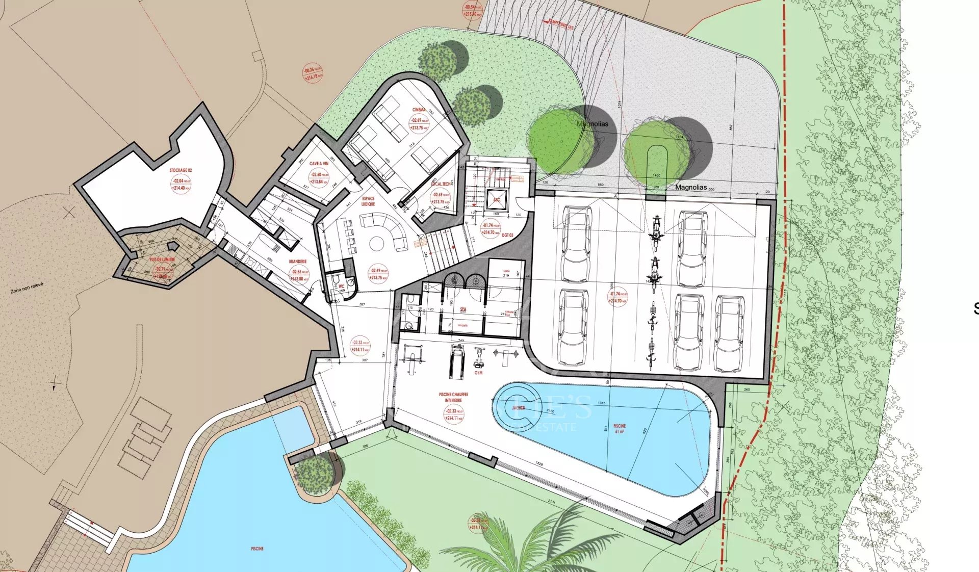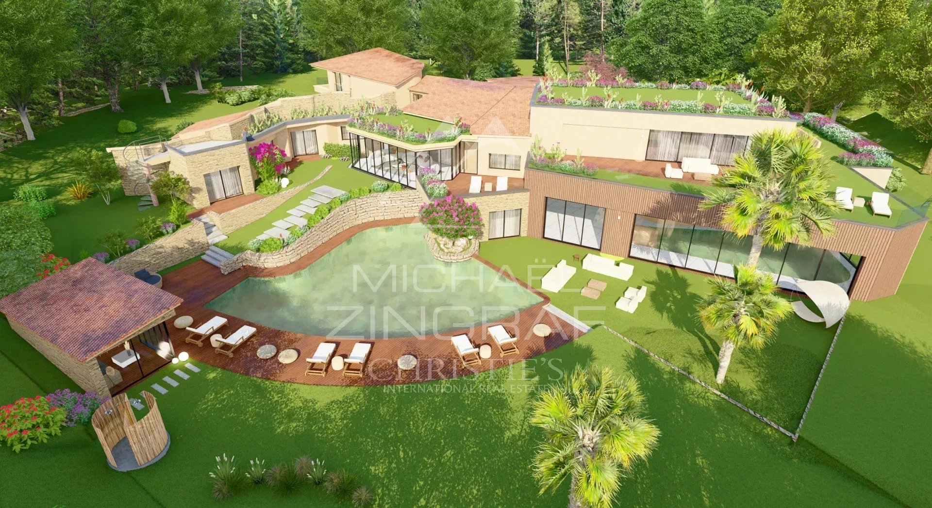 Dans le secteur des Parcs de Mougins, projet en cours pour cette magnifique propriété qui sera entièrement rénovée et agrandie. Située sur un terrain plat d'environ 10 000 m2 au calme absolu, avec environ 1 000m2 habitables, composée de 6 chambres en suite, d'un logement de gardien indépendant de 52 m2, d'un garage de 8 voitures, d'une piscine extérieure avec pool-house et une piscine intérieure avec salle de gym, une salle de cinéma. L'architecture au style unique, la situation et les volumes de cette propriété sont absolument remarquables .