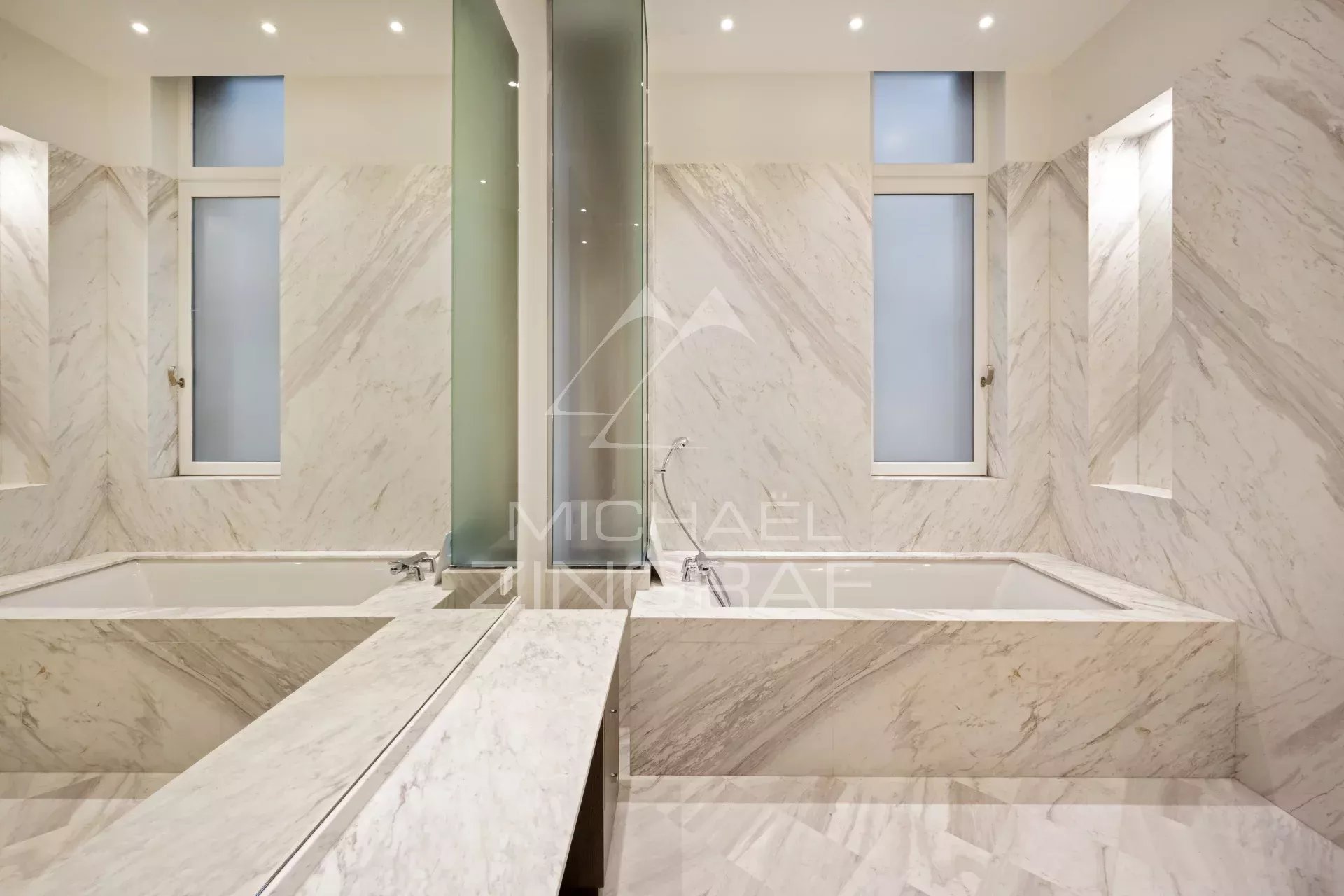 - deux suites avec chambre, salle de bains, dressing et toilettes.