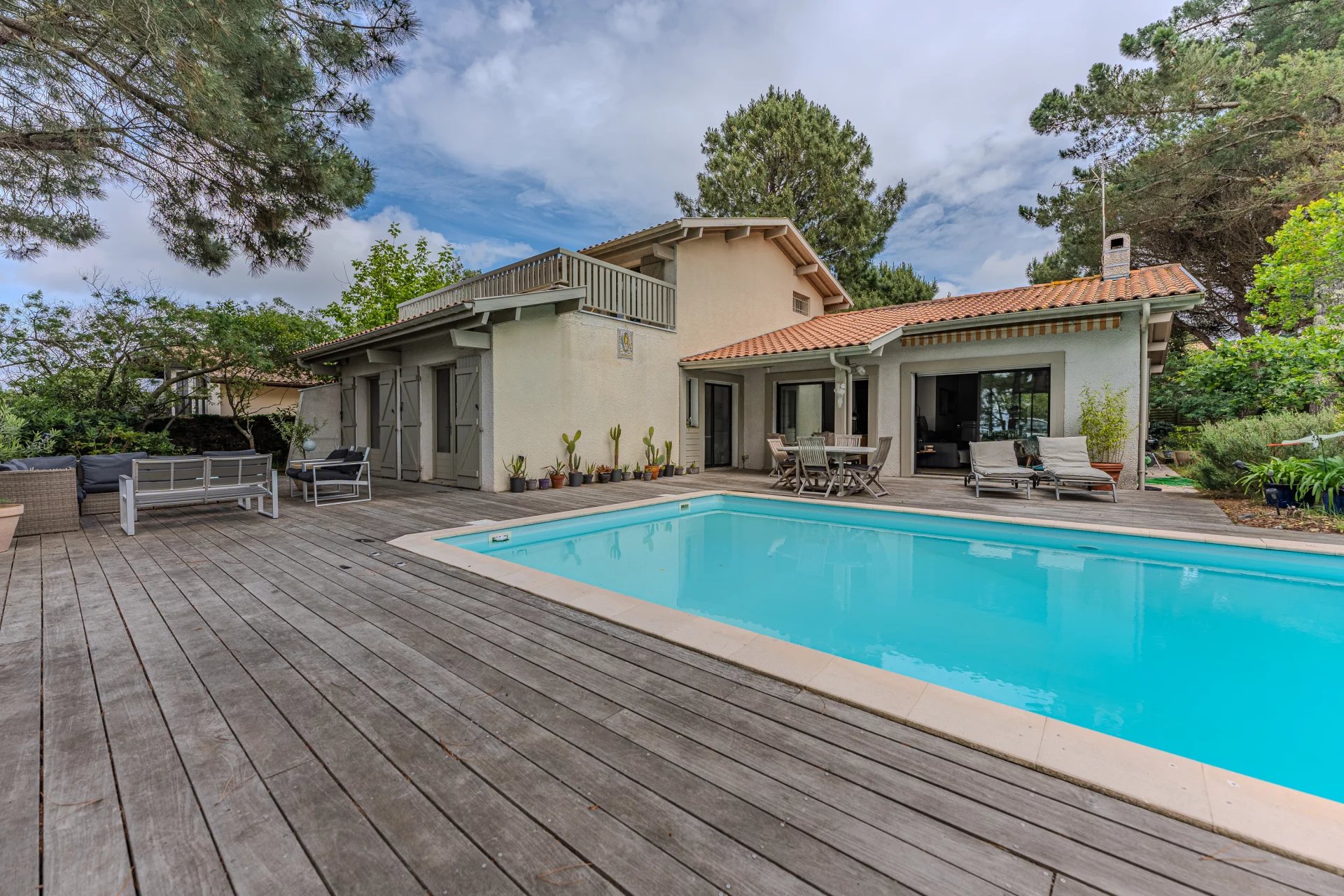 Idéalement située à 300 mètres de la plage, cette villa en bois sur trois niveaux offre de belles prestations dans un environnement boisé très calme ainsi qu'un aperçu sur le...