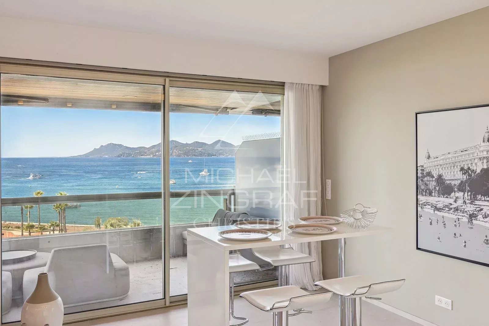Sur la Croisette et proche du Palais des festivals, ce superbe appartement en étage élevé d'environ 85m² comprend: une cuisine ouverte avec séjour et accès terrasse, deux chambres en suite...