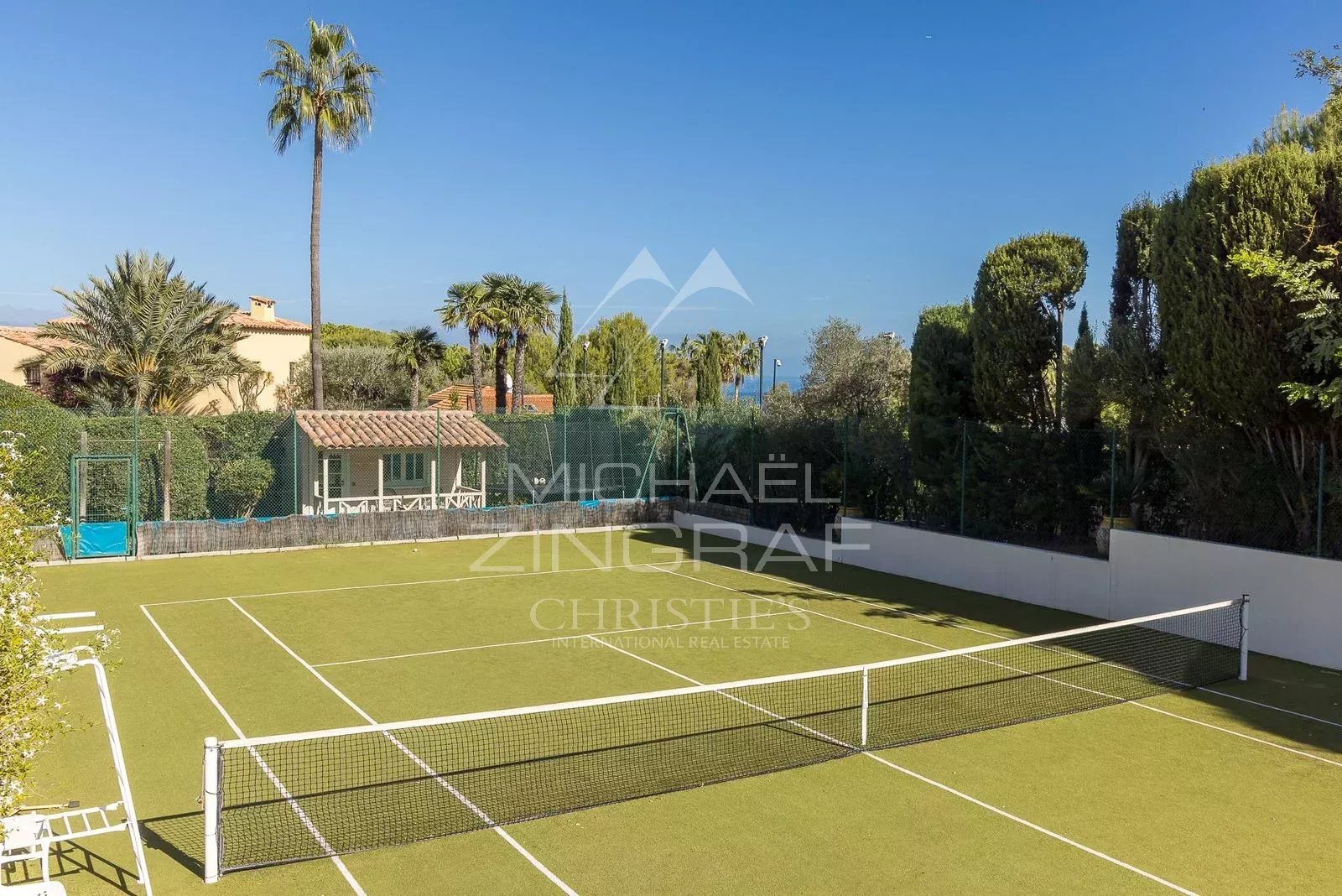 Magnifique villa vue mer de 450 m² environ située dans un domaine fermé sur le versant ouest du Cap d'Antibes, au calme absolu, à quelques pas de la mer, comprenant...