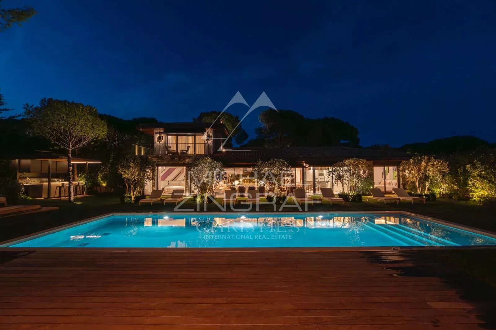 Idéalement située à quelques pas des plages de Pampelonne et du Club 55, au sein d'un domaine privé, cette sublime villa neuve bénéficie de belles prestations et de matériaux nobles....