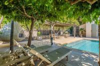 Jolie villa entièrement rénovée, proche des plages des Canoubiers et des Salins, au calme. Elle offre quatre chambres avec salle de bains et dressing, un beau jardin et une piscine...