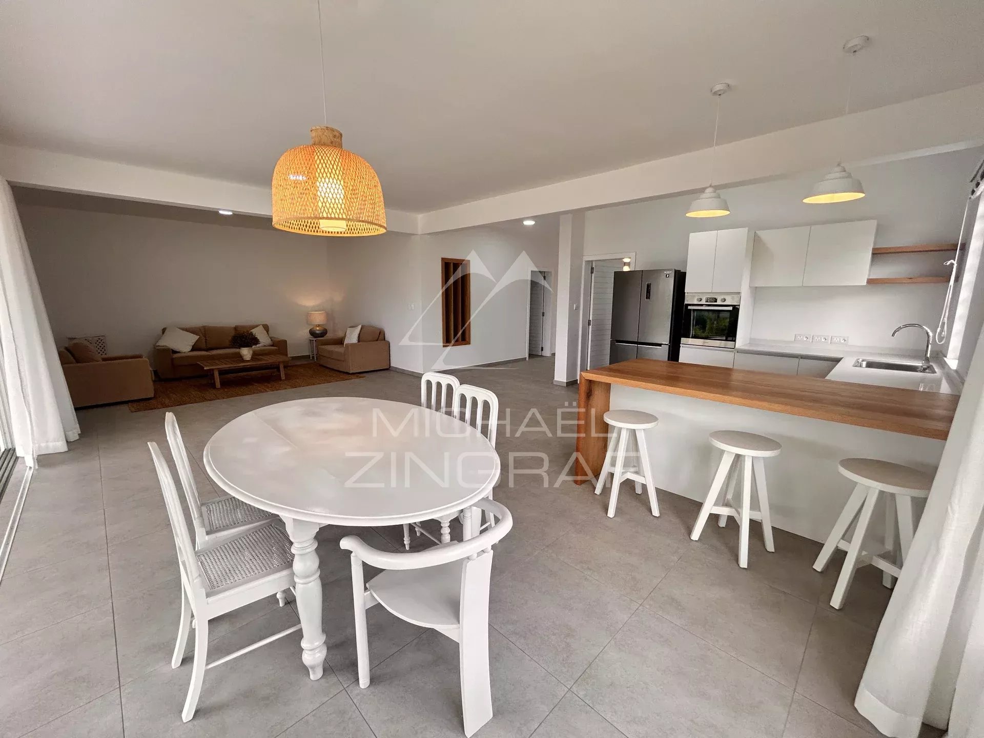 Idéalement située au bord du barachois dans une résidence pieds dans l’eau à Calodyne, cette villa meublée et équipée offre une douceur de vivre rare. Accès direct au lagon, balades...
