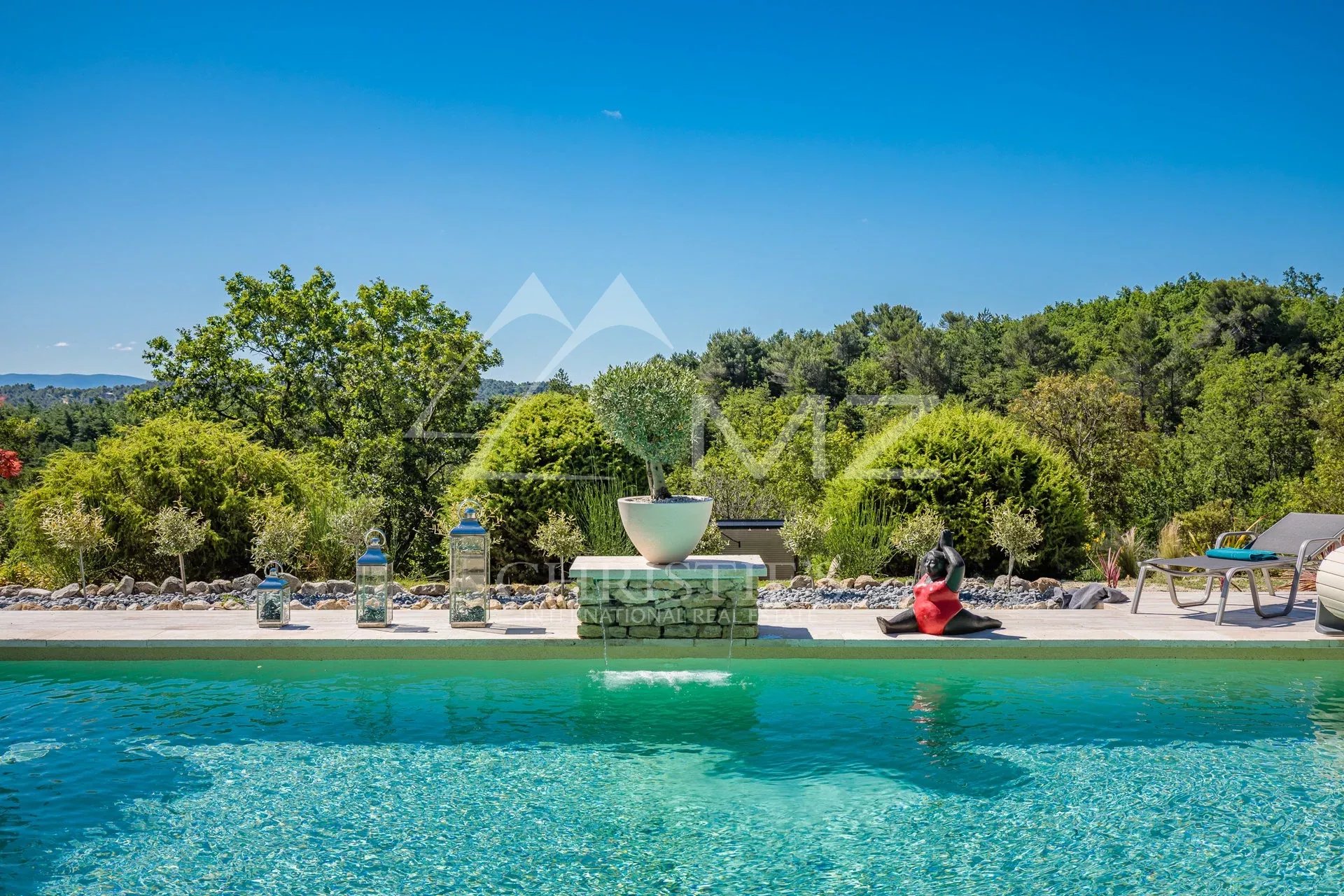 Située dans un environnement privilégié, au coeur de plus de deux hectares arborés de chênes blancs et verts, de lavande et d'oliviers, cette belle maison à l'architecture contemporaine vous séduira...
