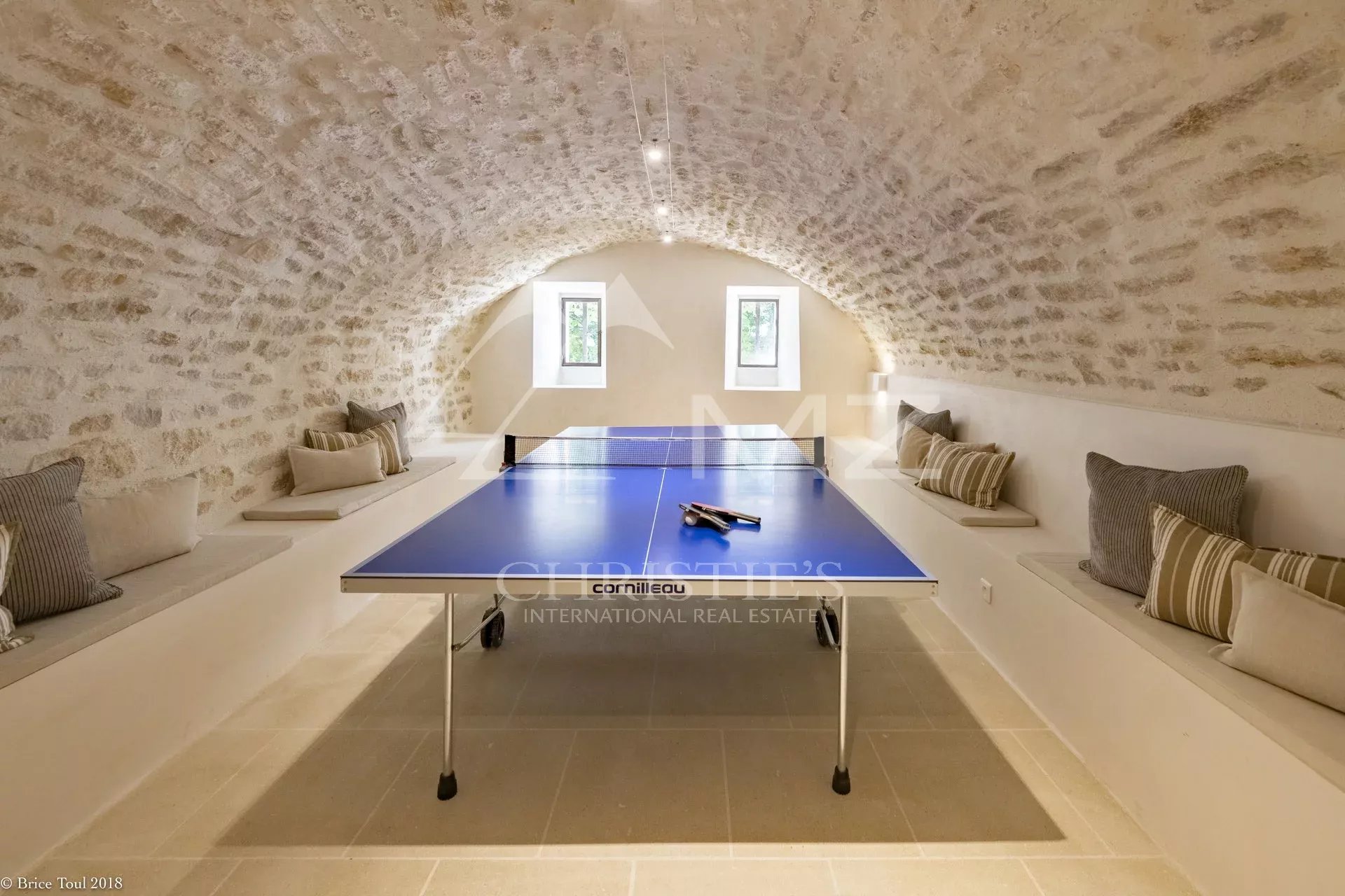Idéalement située à un quart d'heure à pied du centre du village de Goult, mais à l'abri des regards, cette incroyable propriété restaurée avec raffinement vous attend pour des vacances paradisiaques. La vue sur le Luberon est dégagée depuis le beau jardin et ses nombreuses essences méditerranéennes. Le charme réside également dans ses nombreuses terrasses, privatives ou non, et coins ombragés. La superbe piscine à débordement et de forme libre (longue de 15m) vous permet de profiter d'une vue panoramique sur le Luberon et est équipée d'une petite cuisine d'été, d'une douche extérieure, d'un coin salon et de nombreux bains de soleil.