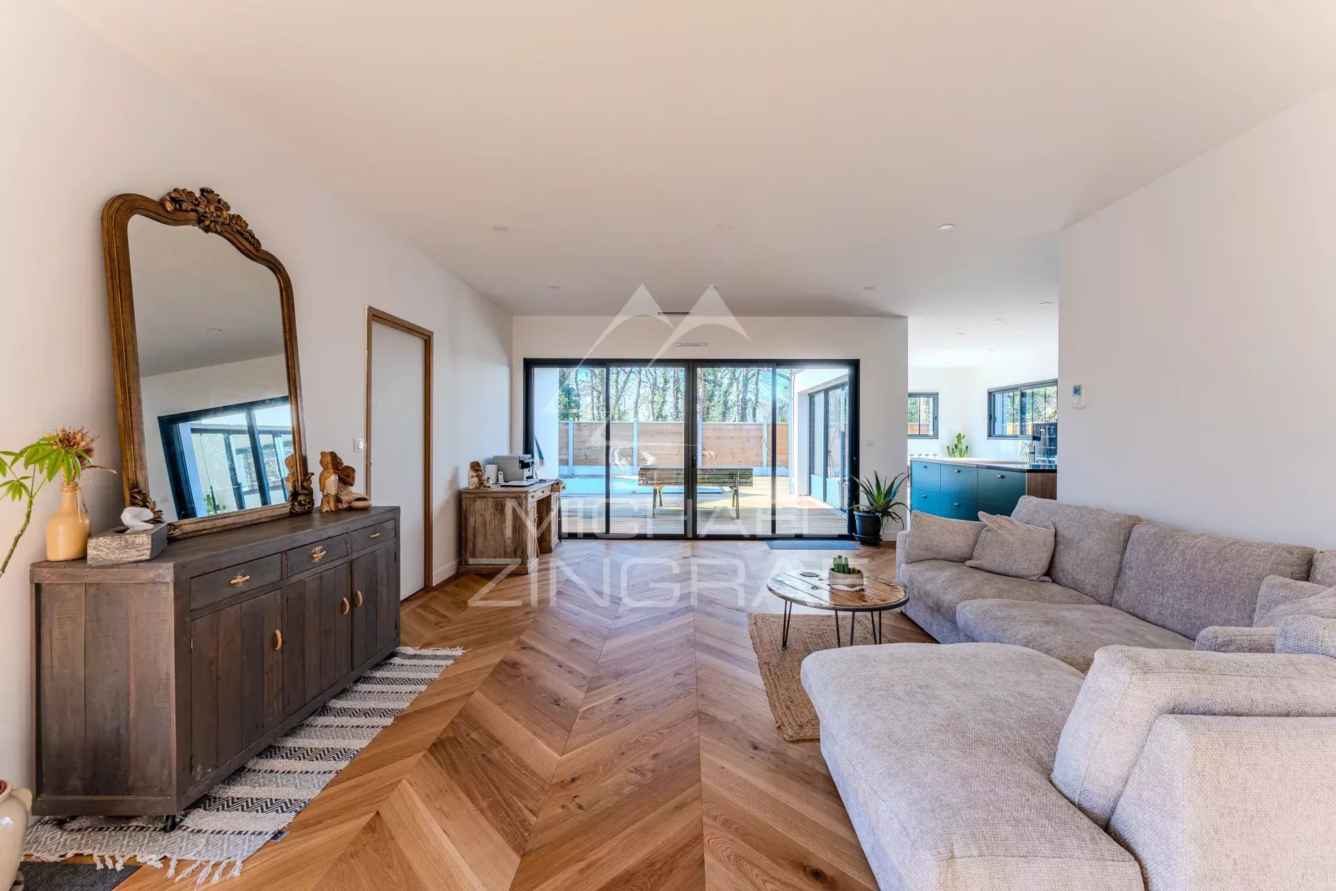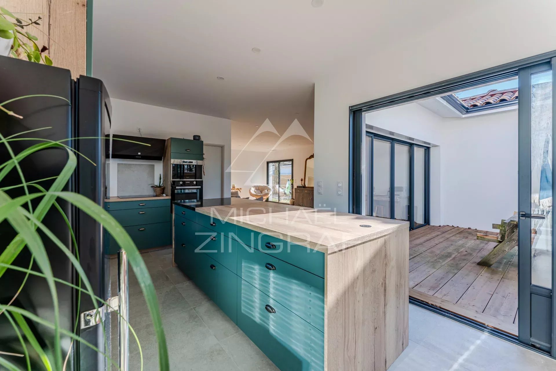 Michael Zingraf Real Estate a le plaisir de vous présenter en exclusivité cette maison moderne nichée dans un quartier paisible et résidentiel de Gujan-Mestras, au cœur du Bassin d’Arcachon. Récemment achevée, cette propriété se distingue par ses espaces généreux et ses finitions de qualité. Le salon spacieux s'ouvre sur une cuisine contemporaine, entièrement équipée et fonctionnelle, avec un accès direct à la terrasse, créant ainsi une harmonie parfaite entre l'intérieur et l'extérieur.