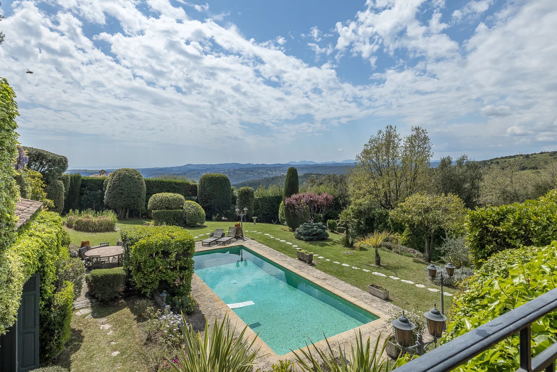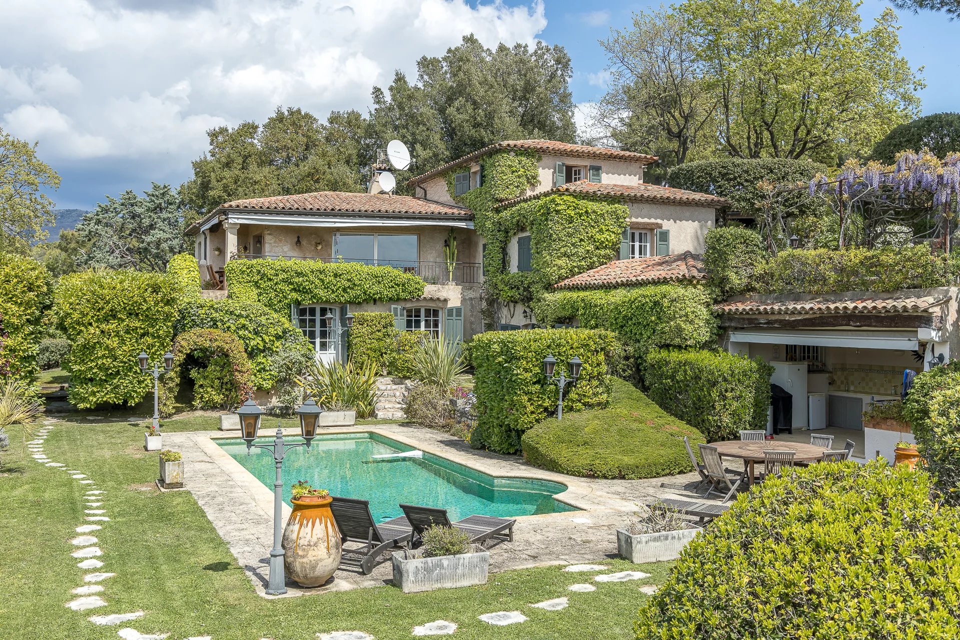 Charmante propriété provençale située dans le prestigieux domaine fermé 'Les Hauts de St. Paul'. Grands volumes intérieurs avec 5 chambres. La propriété bénéficie d'un ensoleillement tout à fait exceptionnel, d'une magnifique vue mer jusqu'au Cap d'Antibes et d'un jardin manucuré plat.