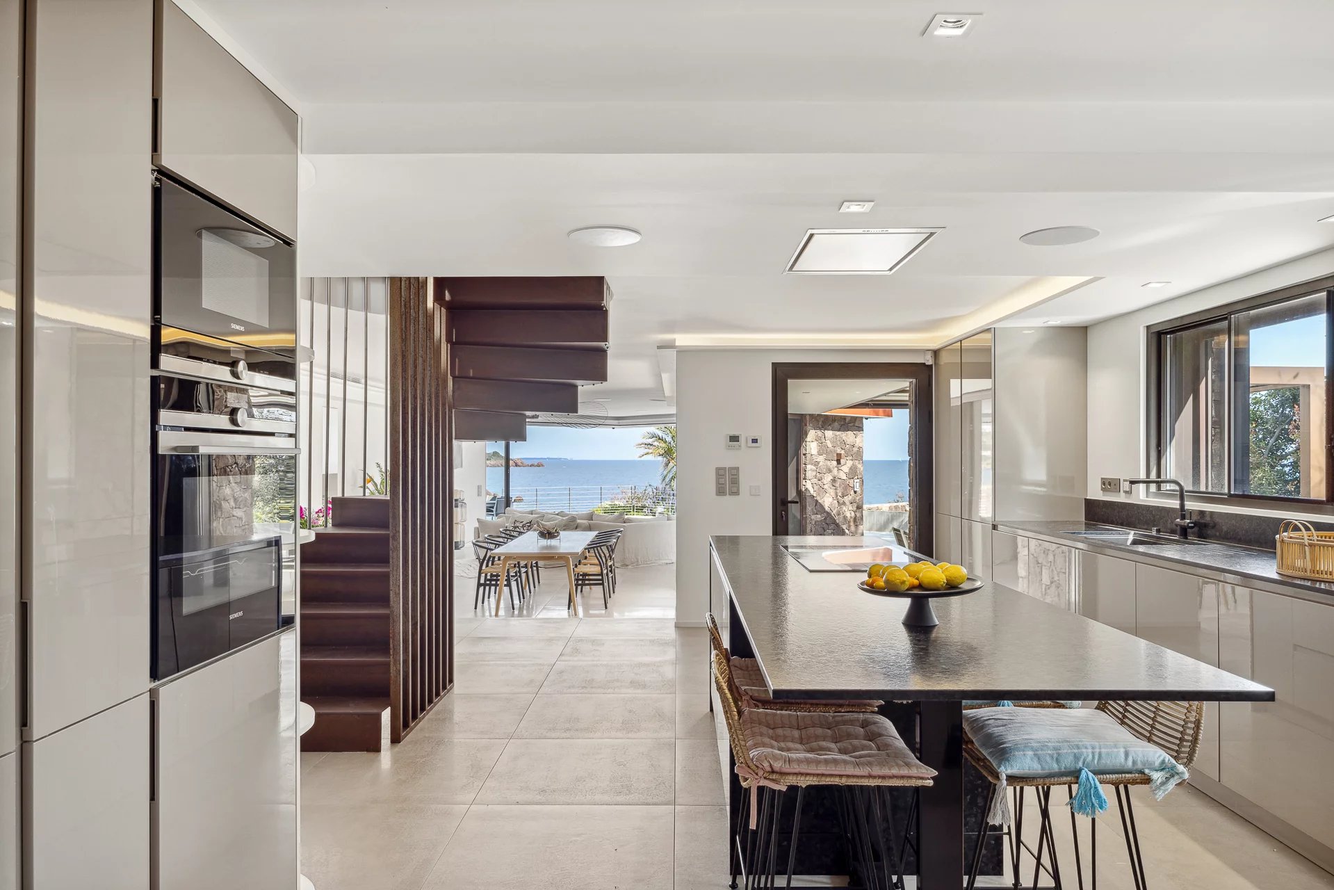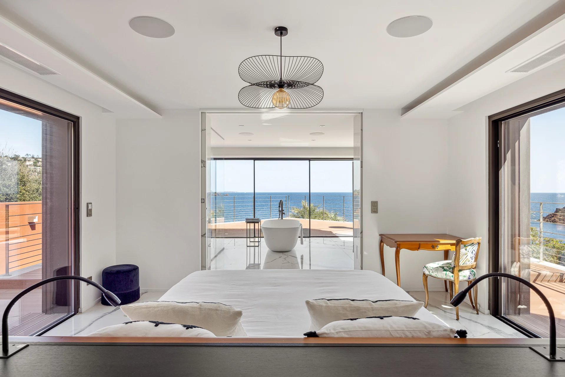 Remarquable rénovation contemporaine pour cette propriété disposant d'un accès direct à la mer, via un portillon situé dans les rochers. La villa principale dispose de 4 suites, dont une chambre de maître et donne sur des vaste terrasses jouxtant une piscine face à la mer.