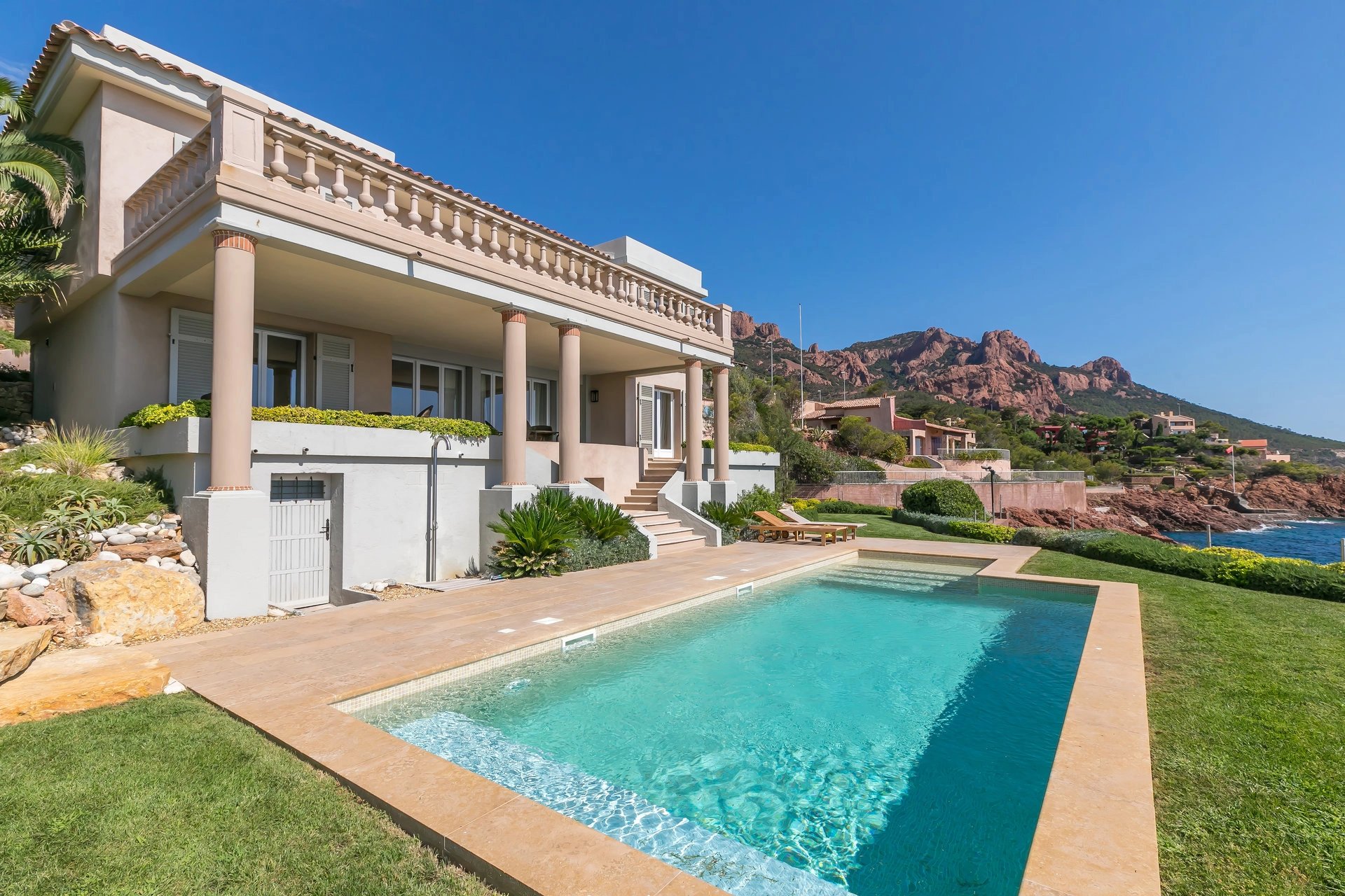 Située à la sortie de la réserve naturelle du Cap Roux, villa de charme exposée Sud entièrement rénovée, sur 2 niveaux, offrant 4 chambres, sur terrain plat de 1000m2 environ avec piscine chauffée, et disposant d'un accès direct à la mer. Coup de coeur, à 35 mn de la Croisette, 10mn du port et moins d'une heure de l'aéroport de Nice.