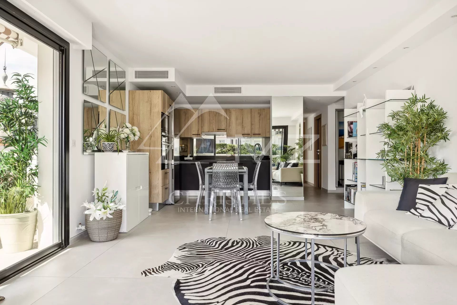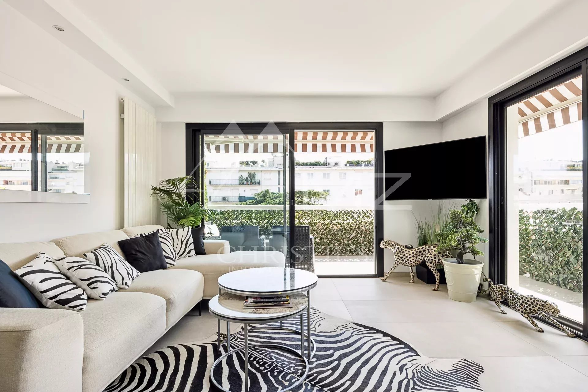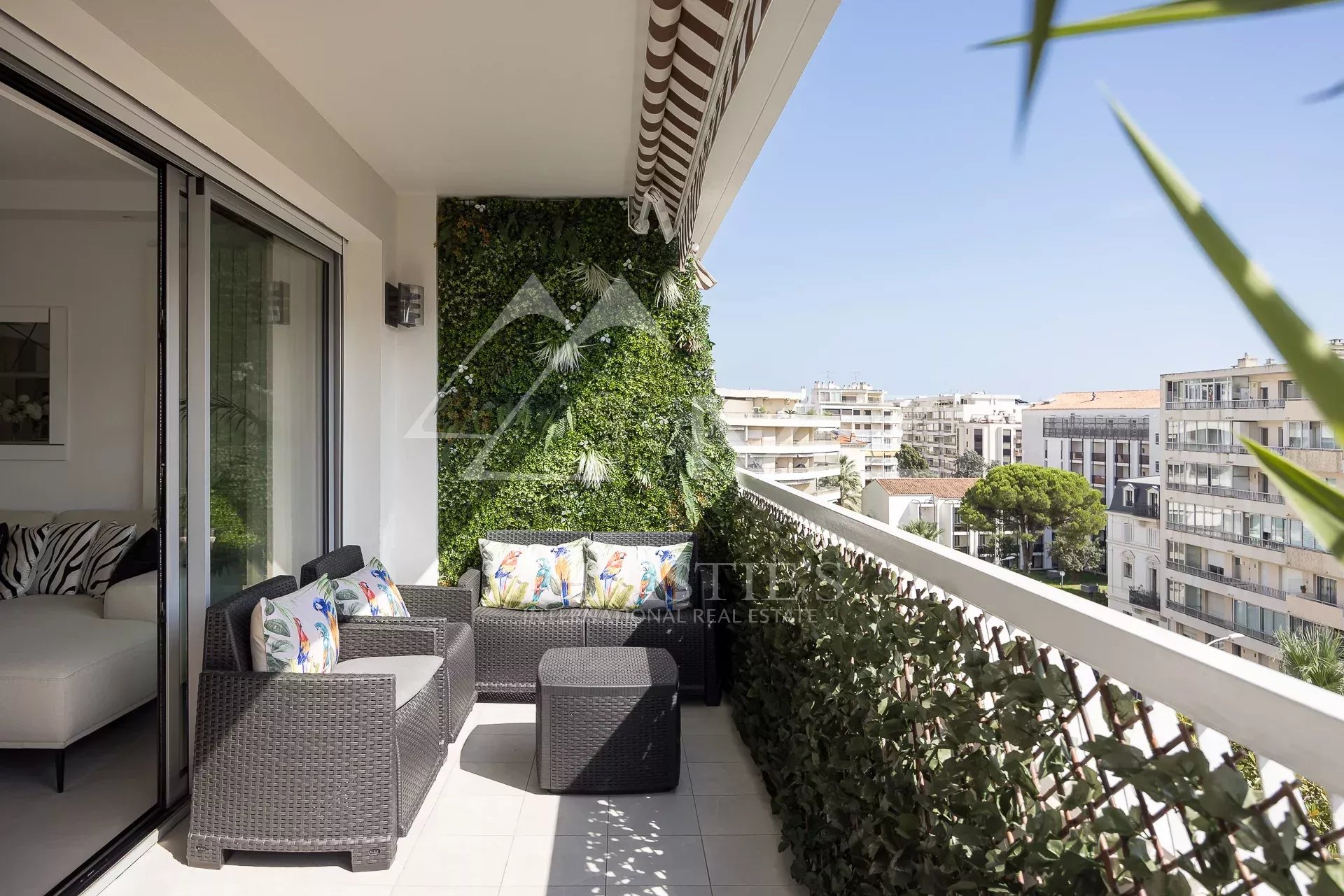 Idéalement situé dans le quartier prisé de Cannes Banane, entre l'hôtel Carlton et le Marriott, ce splendide appartement 3 pièces de 79m2 se compose d'un hall d'entrée, un spacieux séjour ouvrant sur une belle terrasse, une cuisine entièrement équipée, 2 chambres, 2 salles de bains, toutes les pièces s'ouvre sur la terrasse. WC invités.
