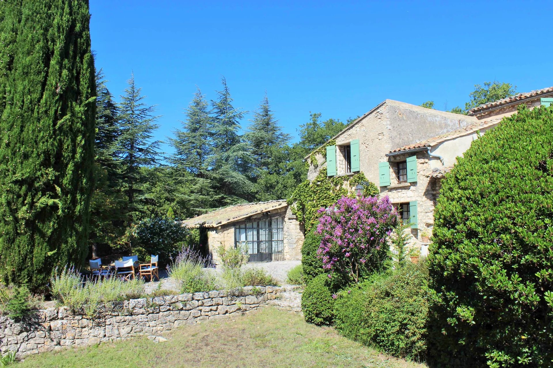À moins de dix minutes en voiture de Gordes, sur la commune de Murs, se cache cette propriété discrète au charme préservée. Nichée au milieu d'un parc de plus de 7 hectares, arboré de cèdres majestueux et de chênes blancs centenaires, se dresse cette belle maison en pierres au bout d'une allée de hauts cyprès. De jolies terrasses en pierres encadrent la maison et une piscine de 10x5 m avec vue sur le champ de lavande complète cette agréable propriété de vacances au charme bucolique et hors du temps.
