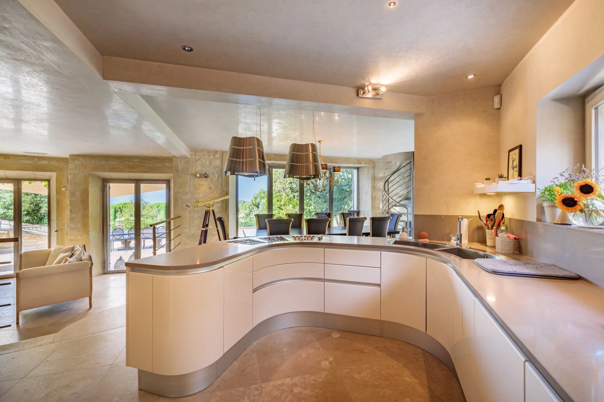 Rénovée en 2023/2024 avec des matériaux haut de gamme, elle conjugue élégance, confort moderne et art de vivre : de vastes espaces de vie lumineux et 7 chambres en suite, toutes avec vue, assurent un cadre de vie privilégié.