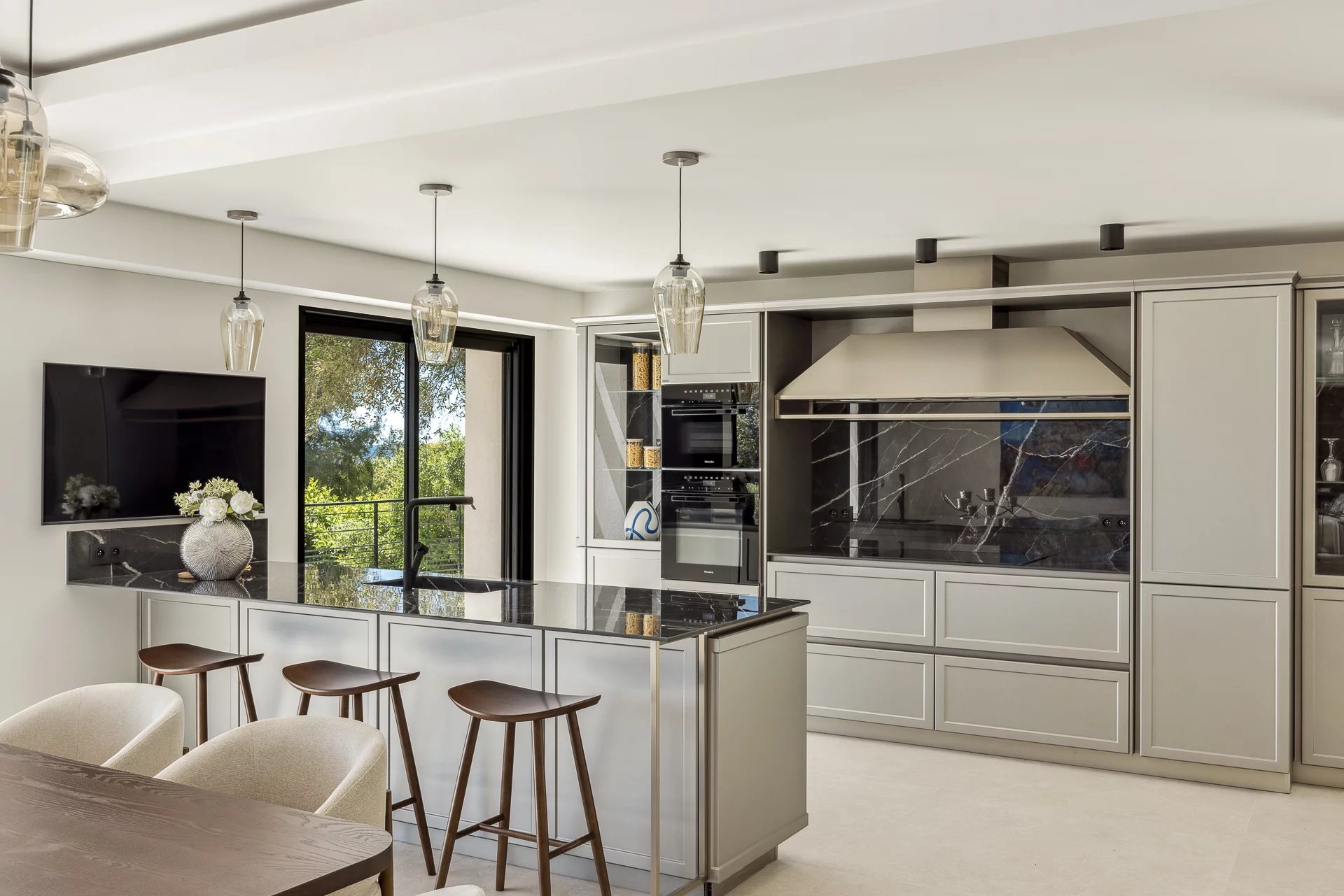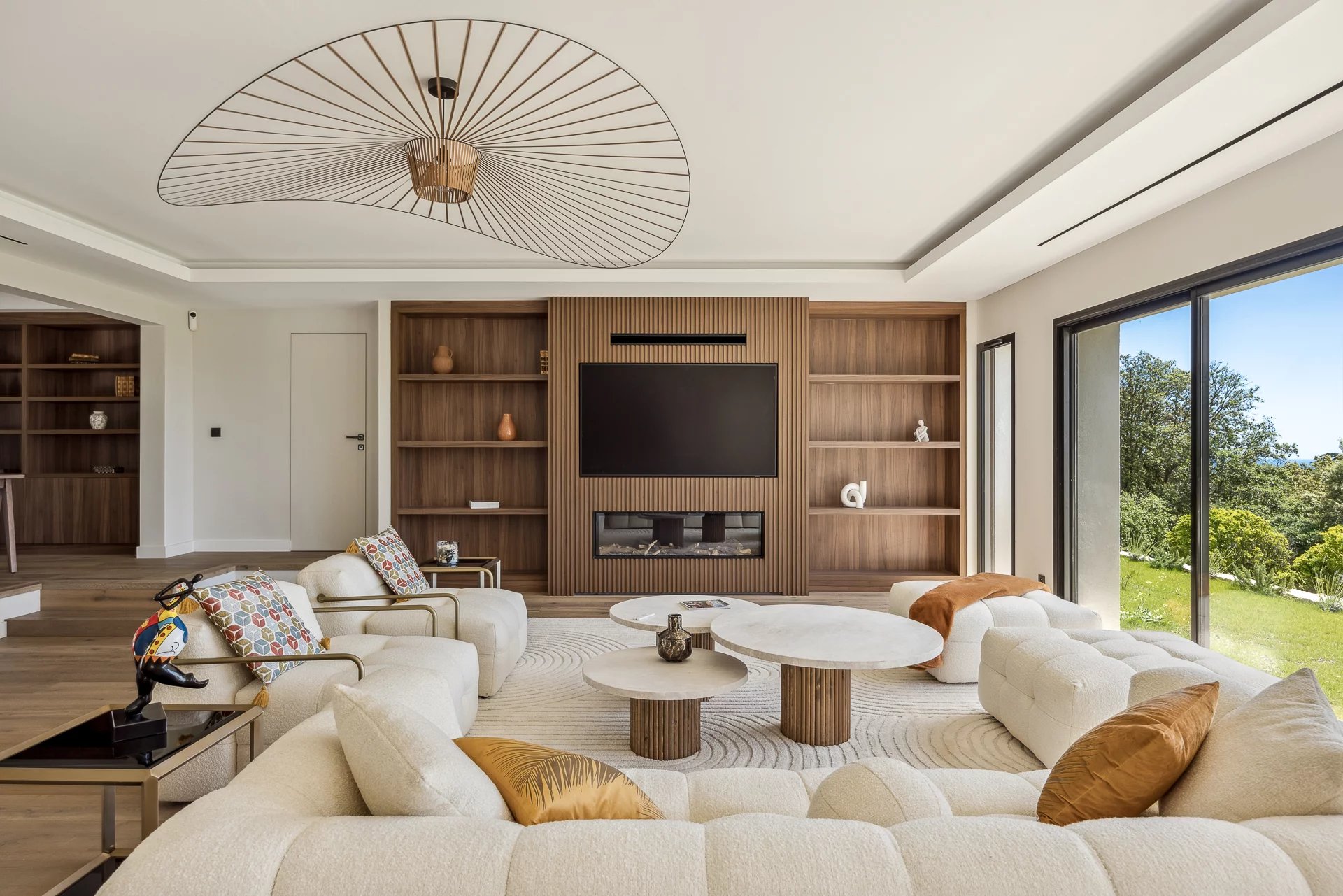 Le rez-de-jardin abrite une salle de sport avec salle de douche et un accès direct à la piscine. La villa dispose également d'une domotique complète, de la climatisation gainable avec pompe à chaleur, abri pour deux voitures, nombreux parkings et une allée joliment pavée.