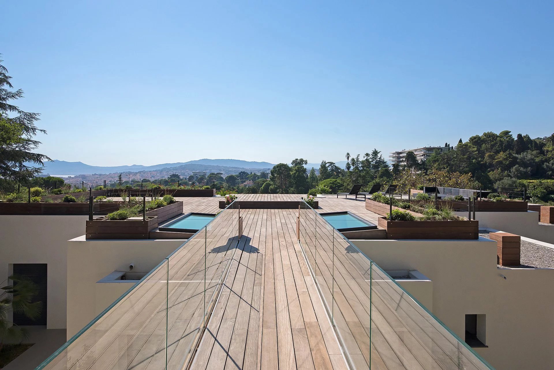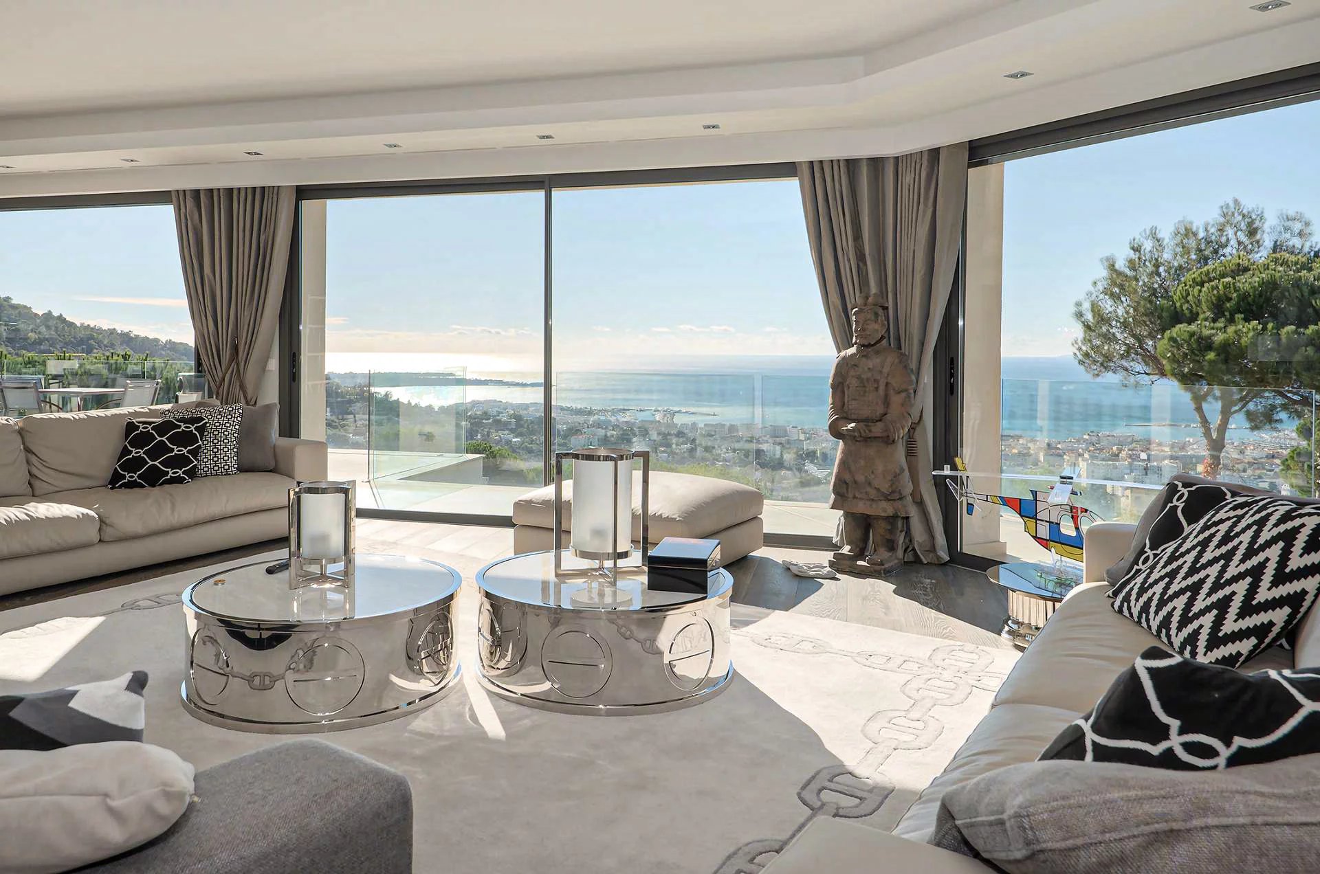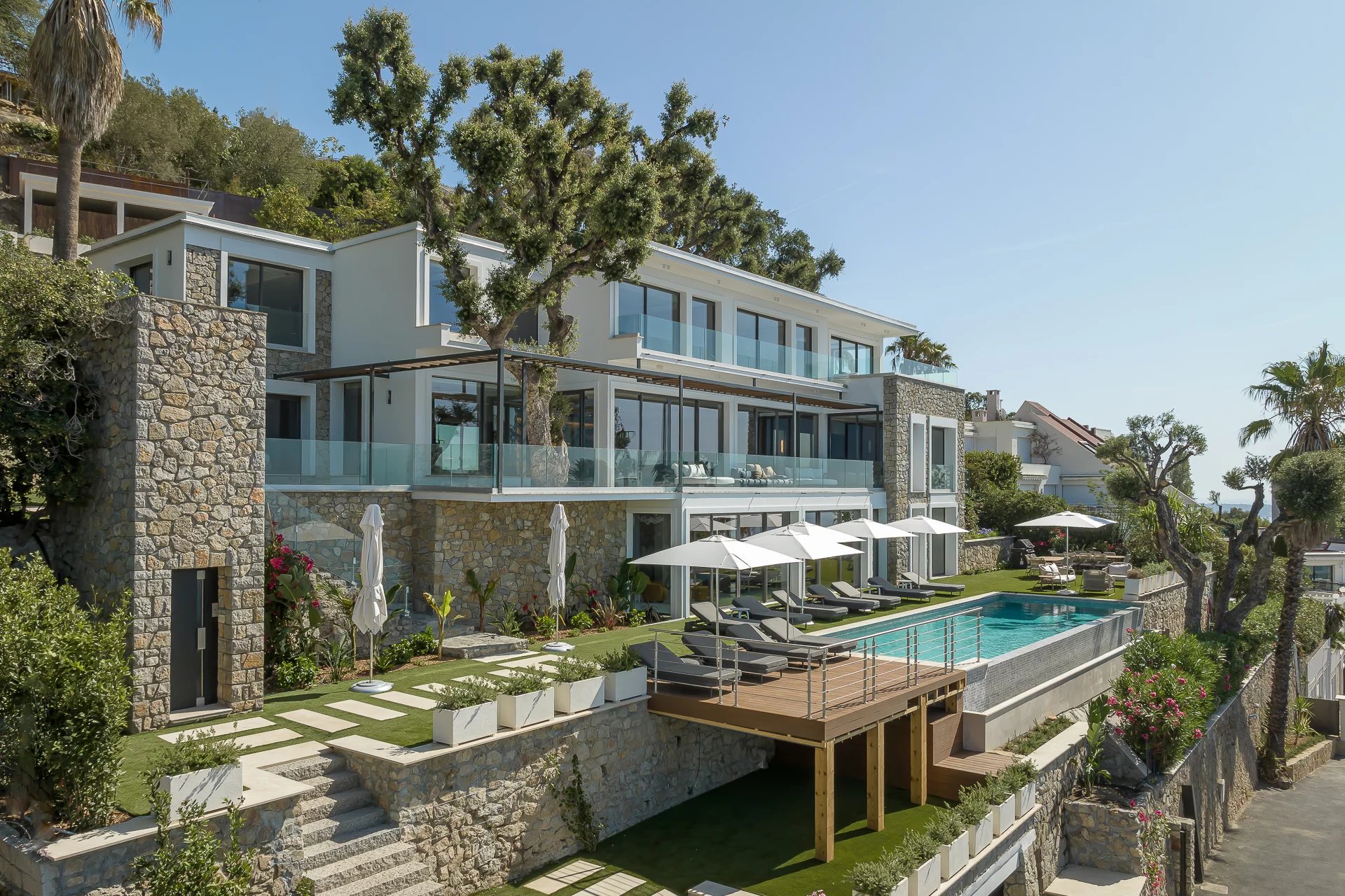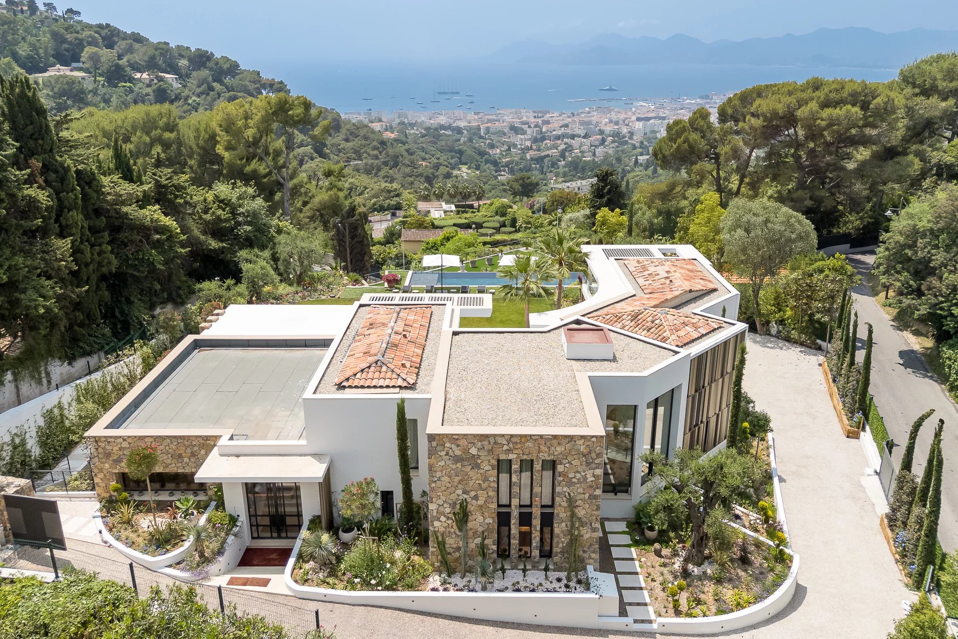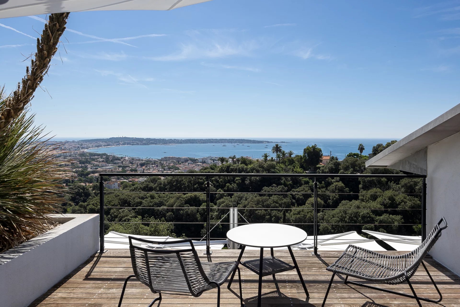 Villa moderne neuve totalisant 350 m2 environ sur un terrain bénéficiant d'une vue mer remarquable sur la baie de Cannes et les Îles de Lérins, et offrant également un ensoleillement...