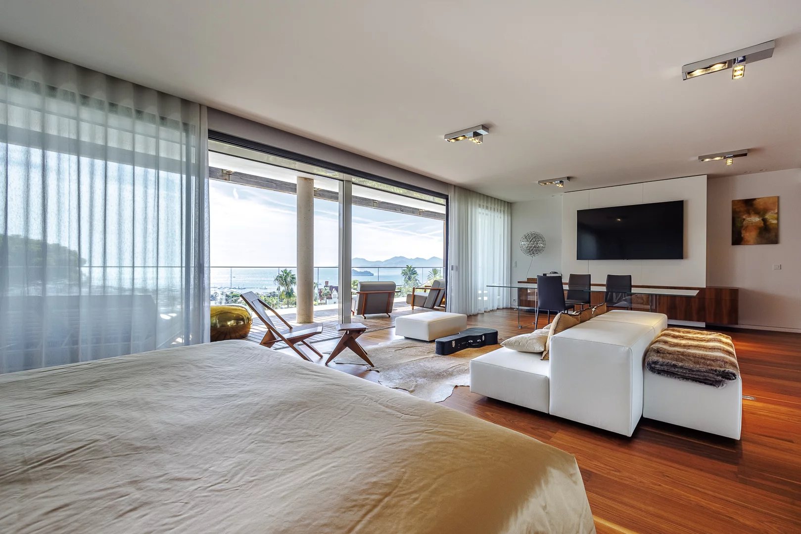 Cet unique penthouse sur deux niveaux d'environ 580 m² situé sur la Croisette dans un immeuble sécurisé de standing, se compose de deux séjours, deux cuisines équipées, d’une grande chambre...