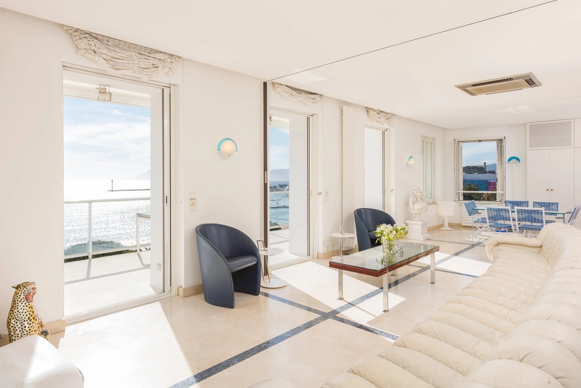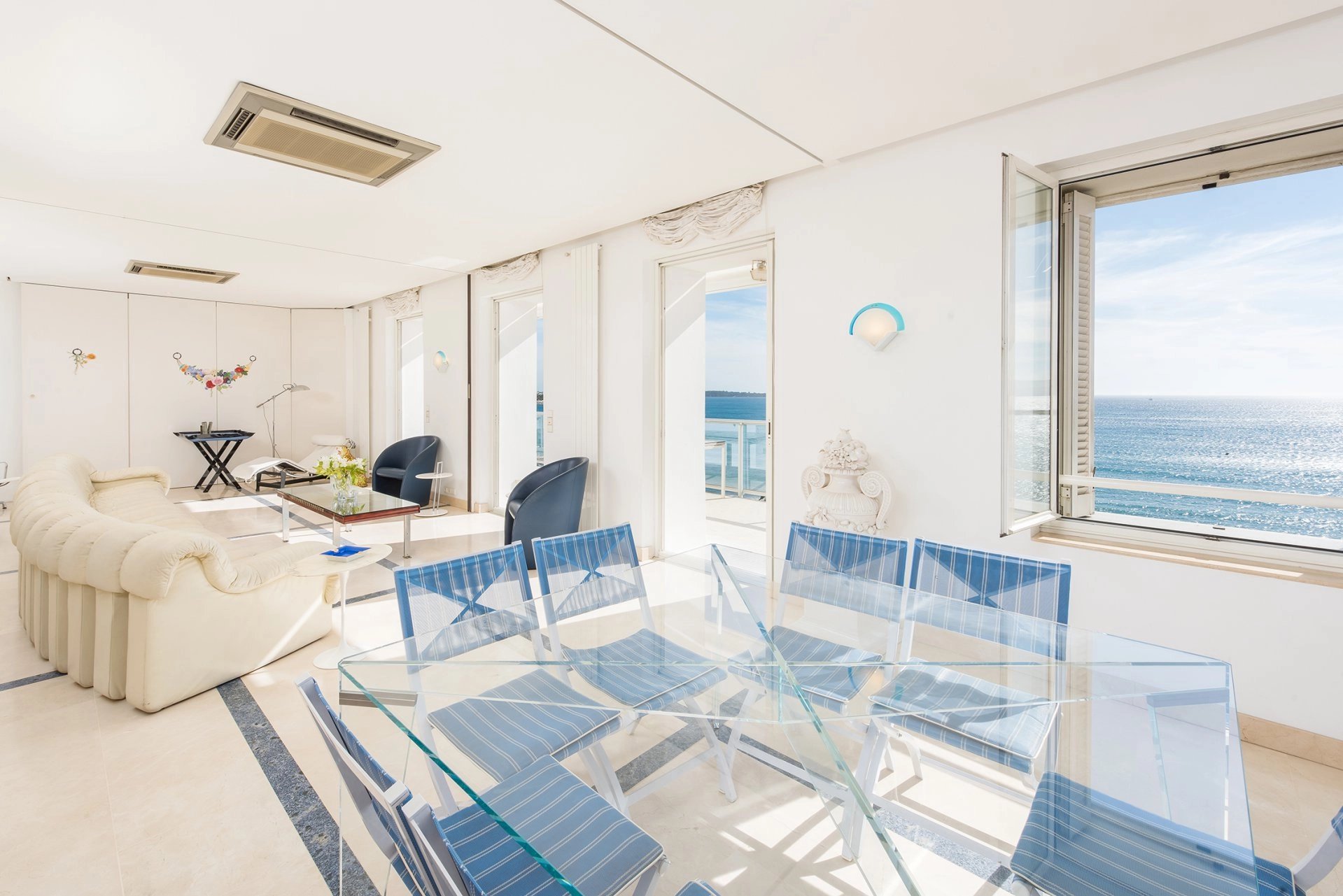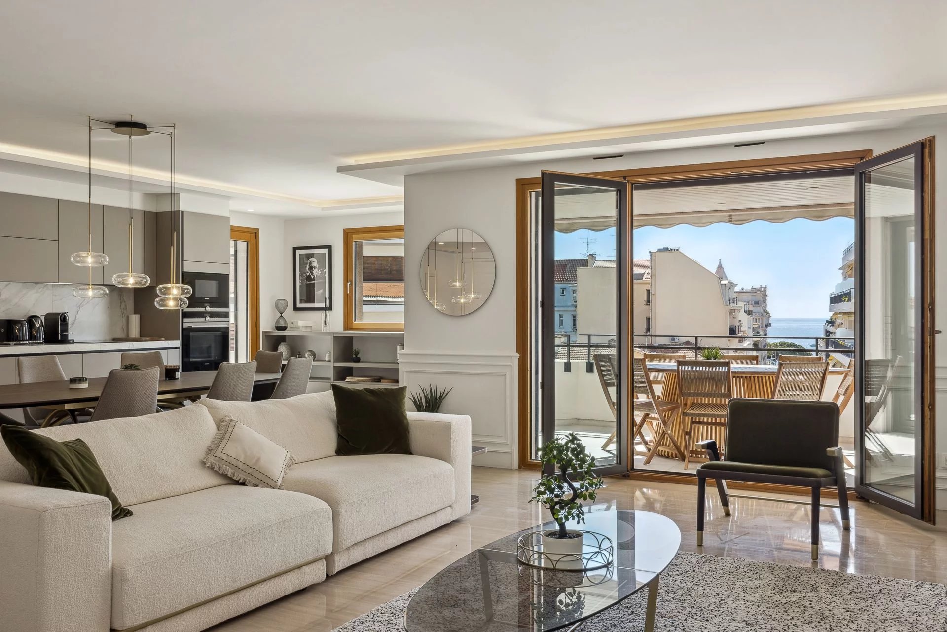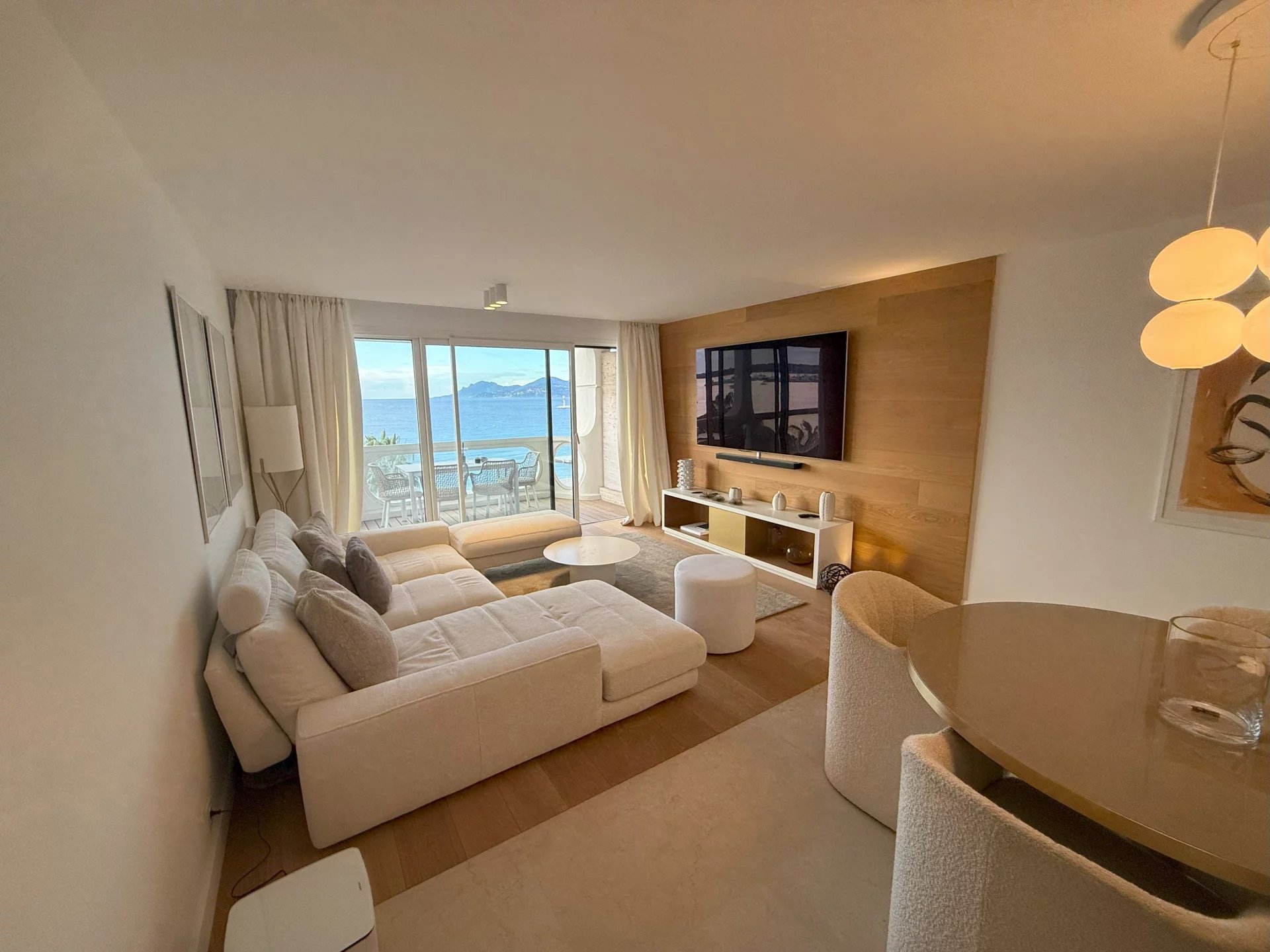 Idéalement situé et à pied du Palais des Festivals, cet appartement d'environ 200 m², avec vue mer et grande terrasse, comprend : un double séjour avec accès terrasse, une cuisine...