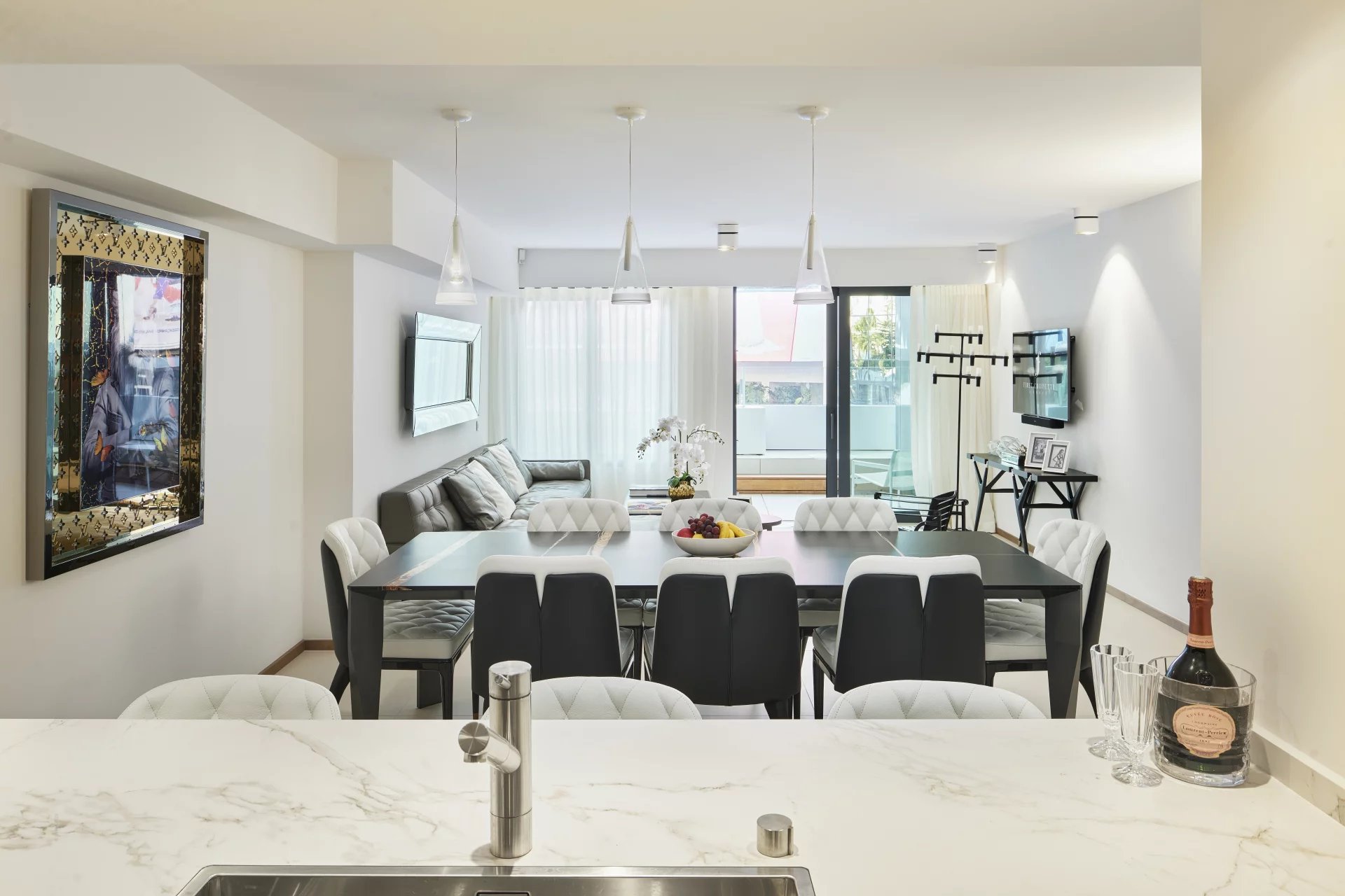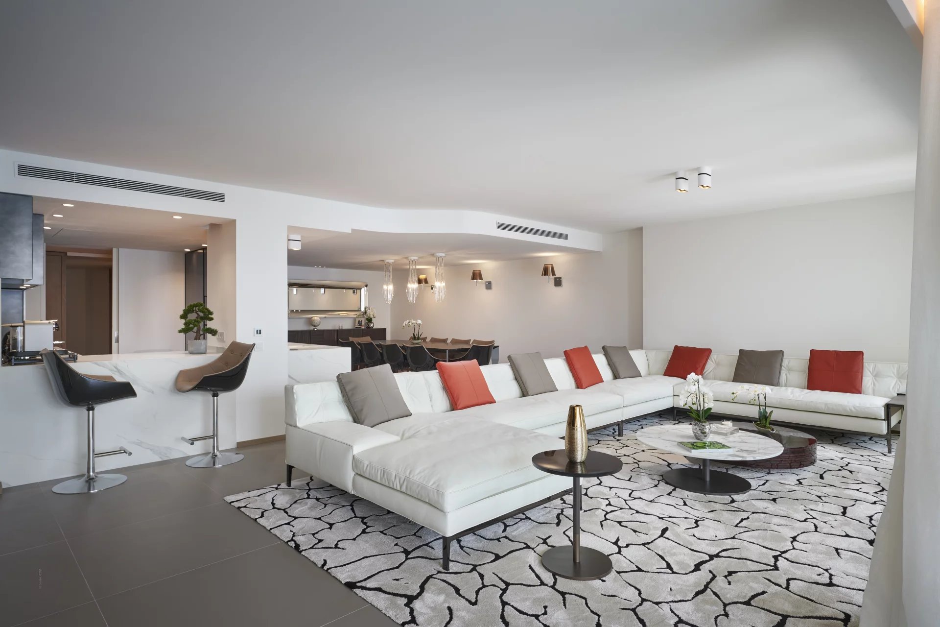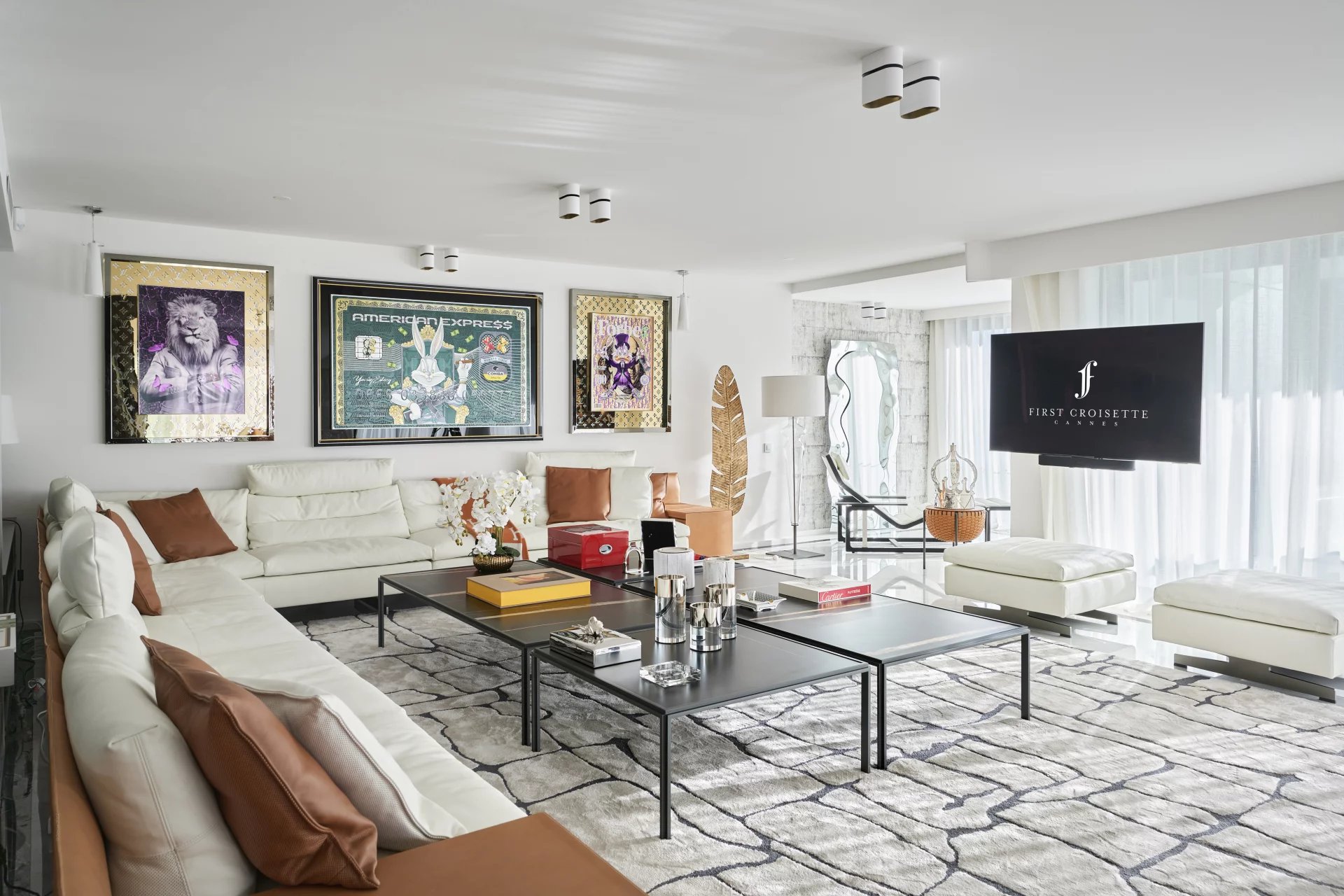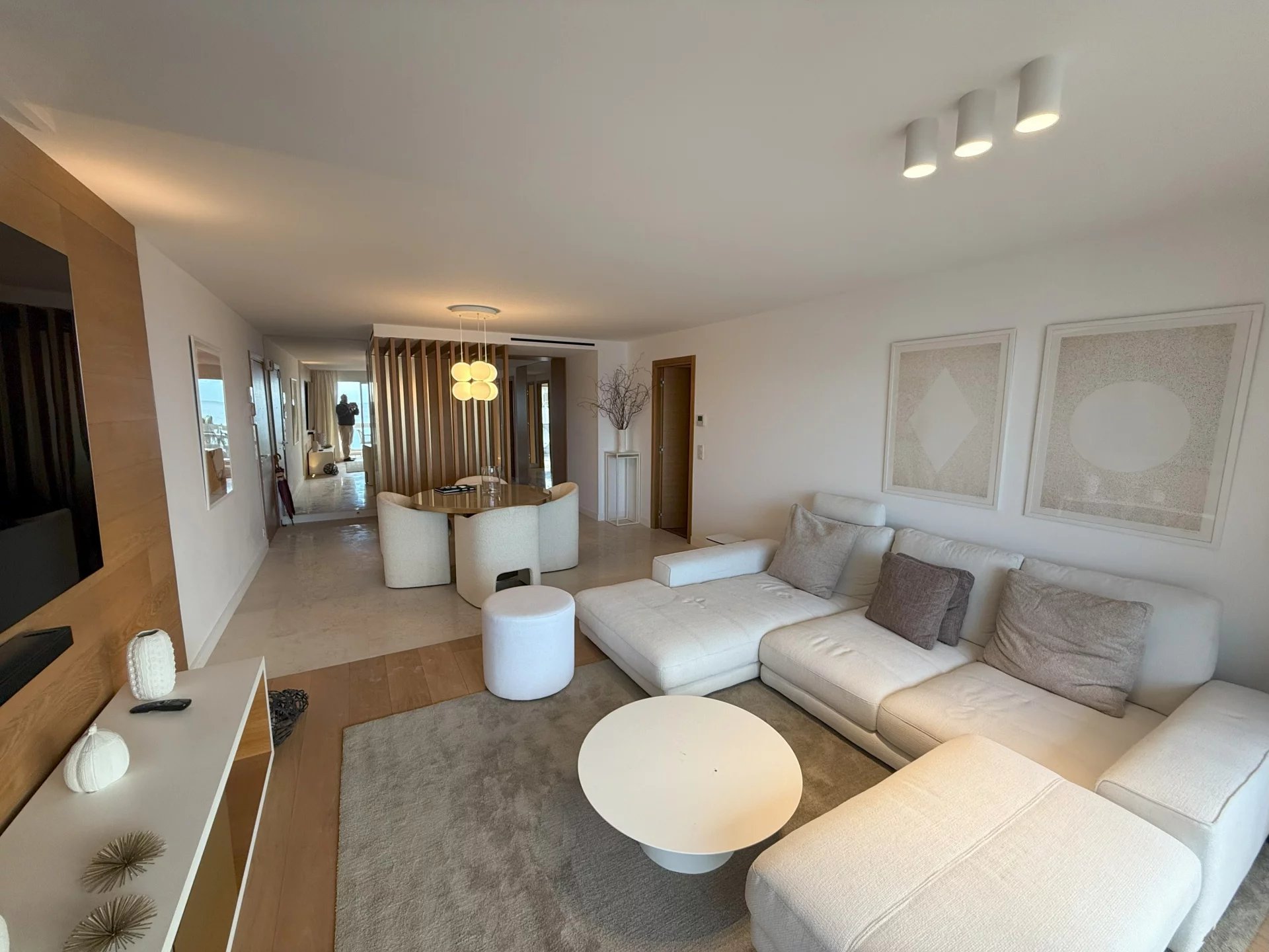 300 - Situé dans un immeuble neuf de la croisette, en face du palais des festivals, appartement grand luxe de 395m² environ, comprenant : un séjour, une salle à manger,...