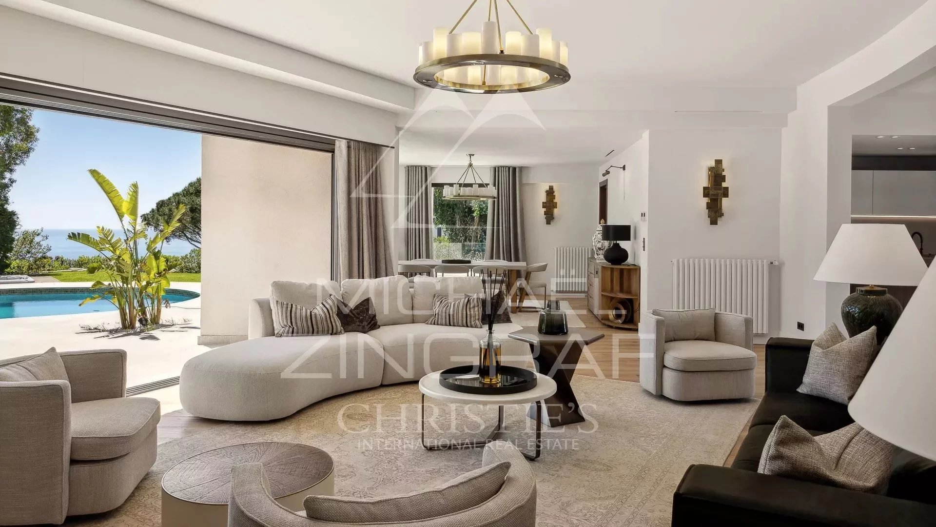 Cette magnifique villa de 450² environ, à la rénovation très moderne, sur trois niveaux, propose un très grand séjour/cuisine lumineux doté d'une vue panoramique sur la mer et donnant sur...