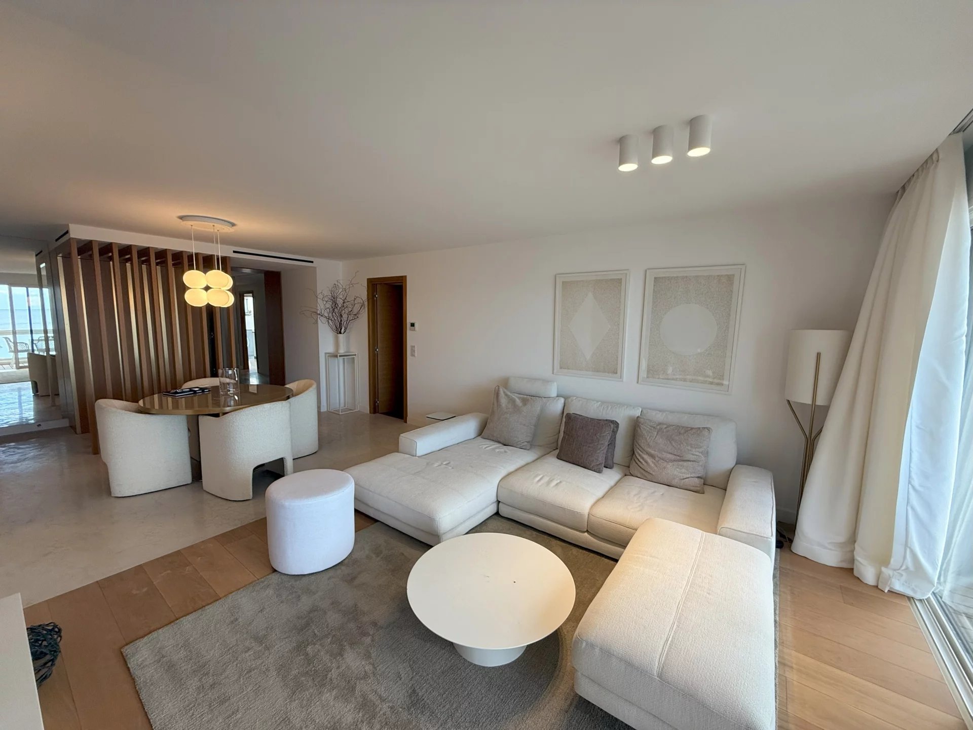 201 - Situé dans un immeuble neuf de la croisette, en face du palais des festivals, appartement de 175m² environ, comprenant : un séjour, une salle à manger, une cuisine...