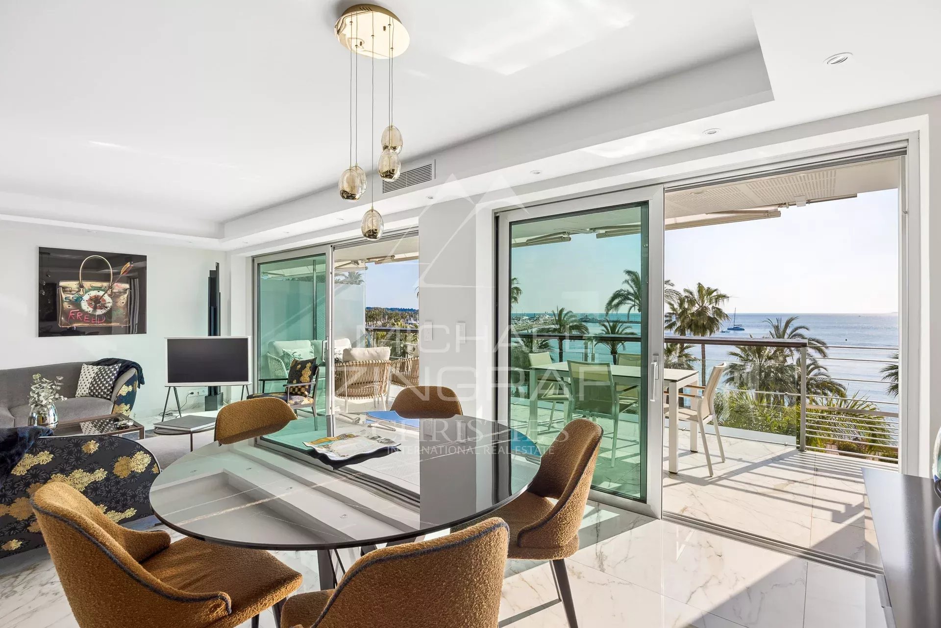 Dans une des résidences les plus recherchées de la Croisette, magnifique appartement lumineux 3 pièces d'environ 100 m² entièrement rénové, offrant des prestations haut de gamme et une large terrasse....