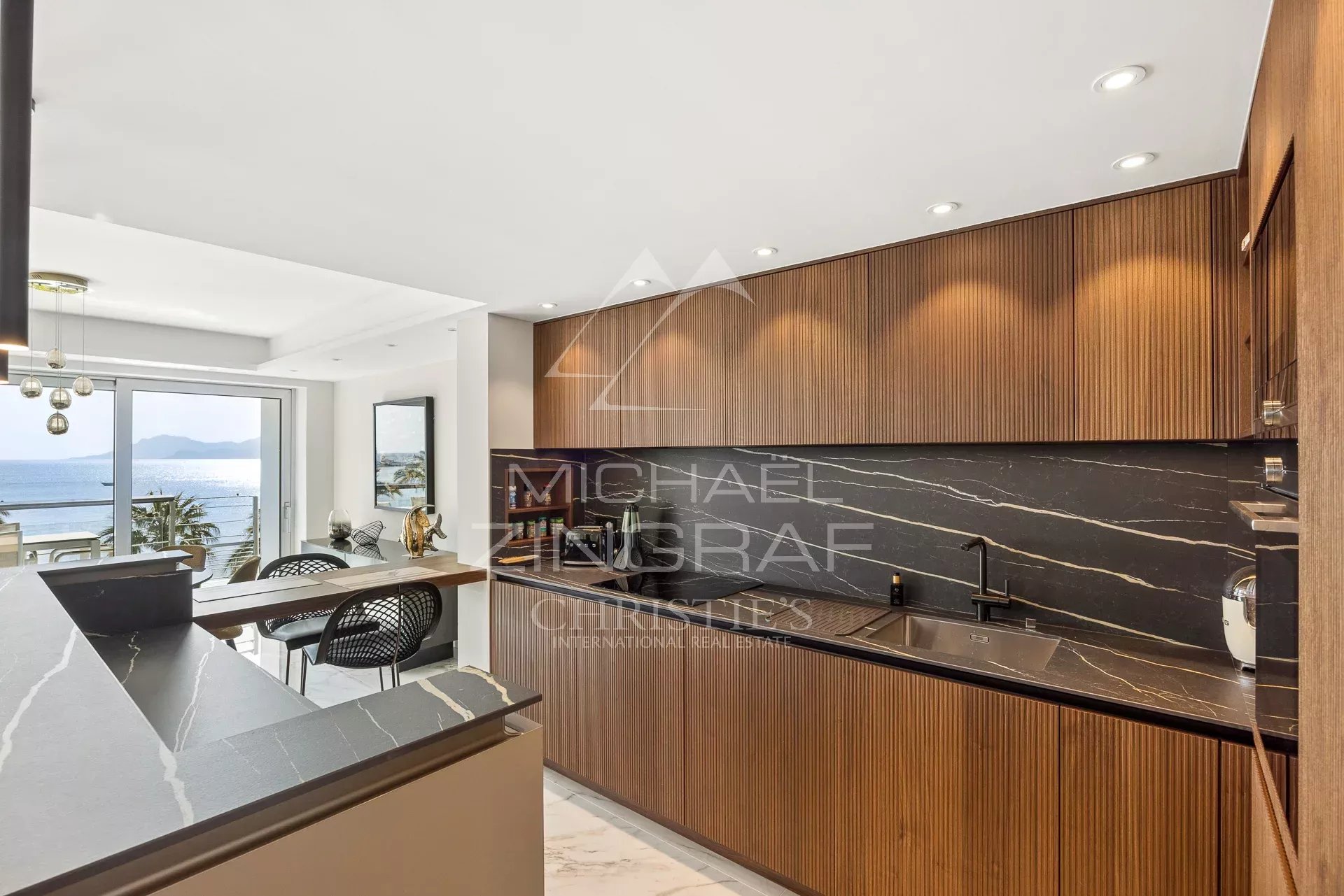 Idéalement situé et à pied du Palais des Festivals, cet appartement d'environ 200 m², avec vue mer et grande terrasse, comprend : un double séjour avec accès terrasse, une cuisine...