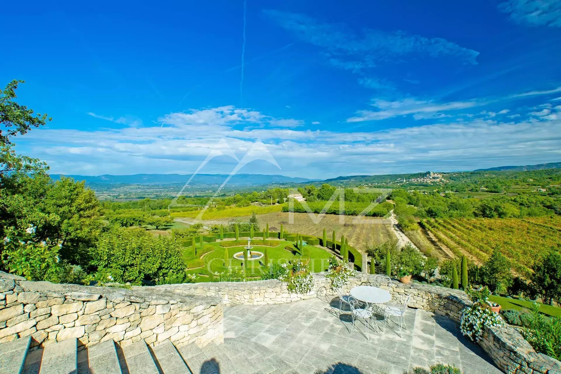 Proche de Gordes, somptueuse propriété en position dominante jouissant d'un environnement exceptionnel avec vue panoramique sur les collines. Au bout d'un long chemin, vous découvrirez un domaine paisible et totalement...