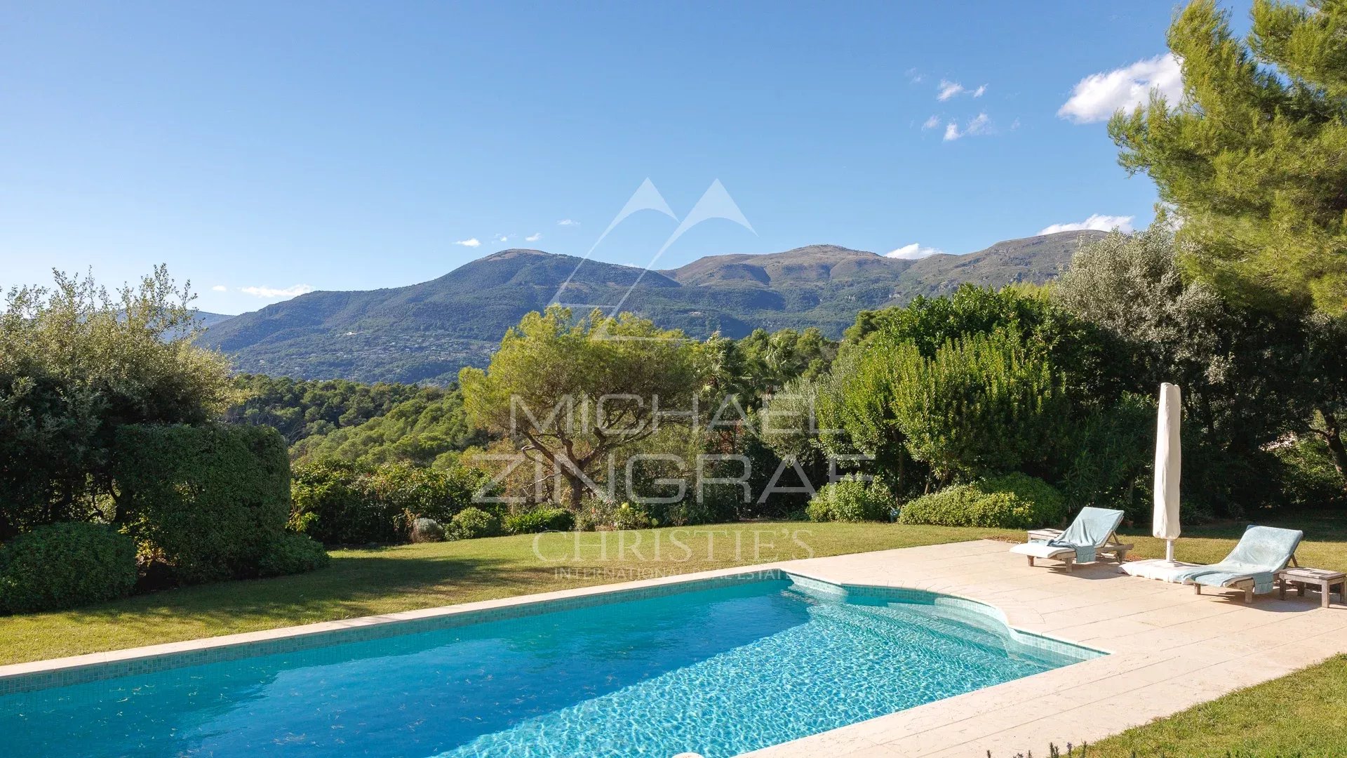 Charmante villa provençale à proximité de Saint-Paul-de-Vence bénéficiant d'une vue dégagée sur les collines et le village. La villa dispose de 4 chambres climatisées avec salles de bains/douche privatives, d'une...