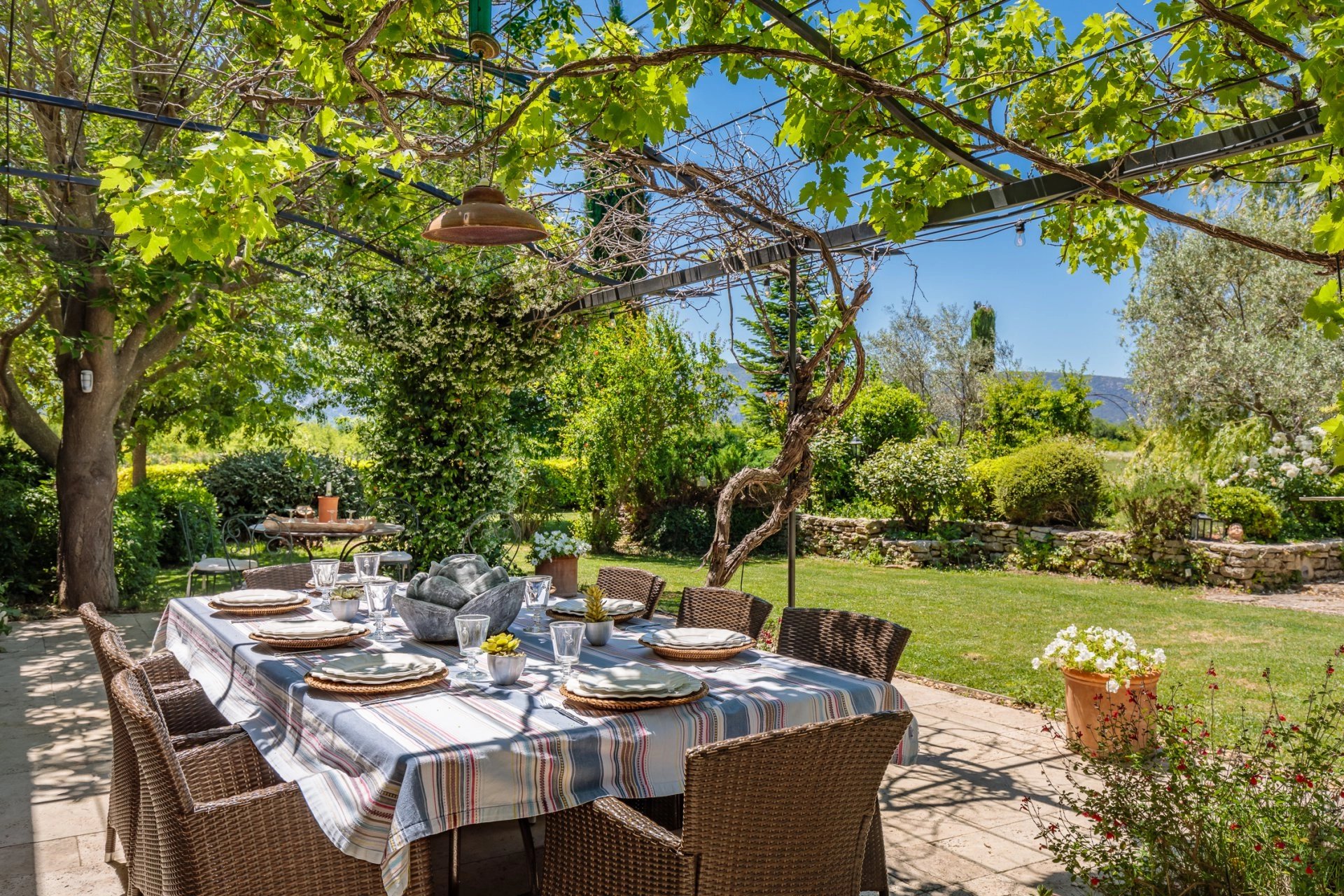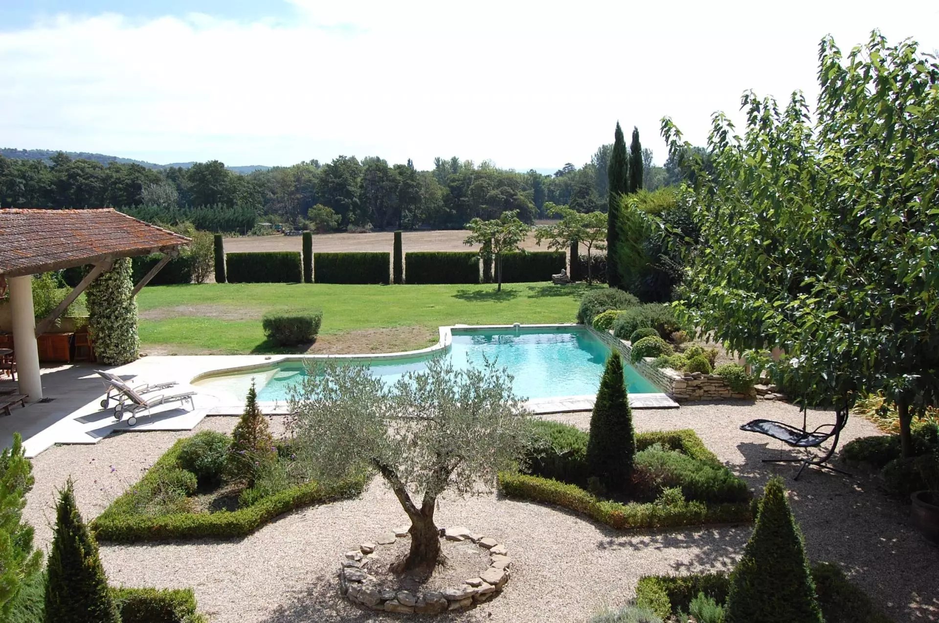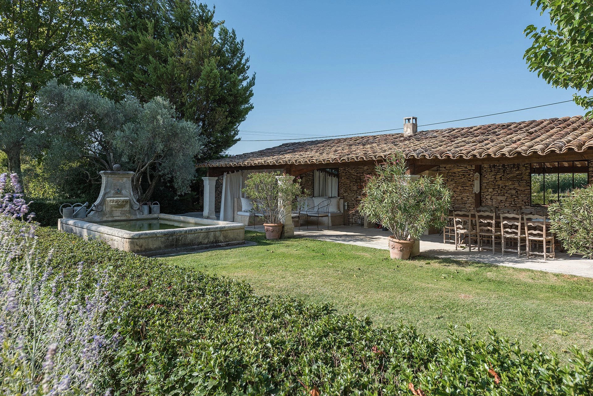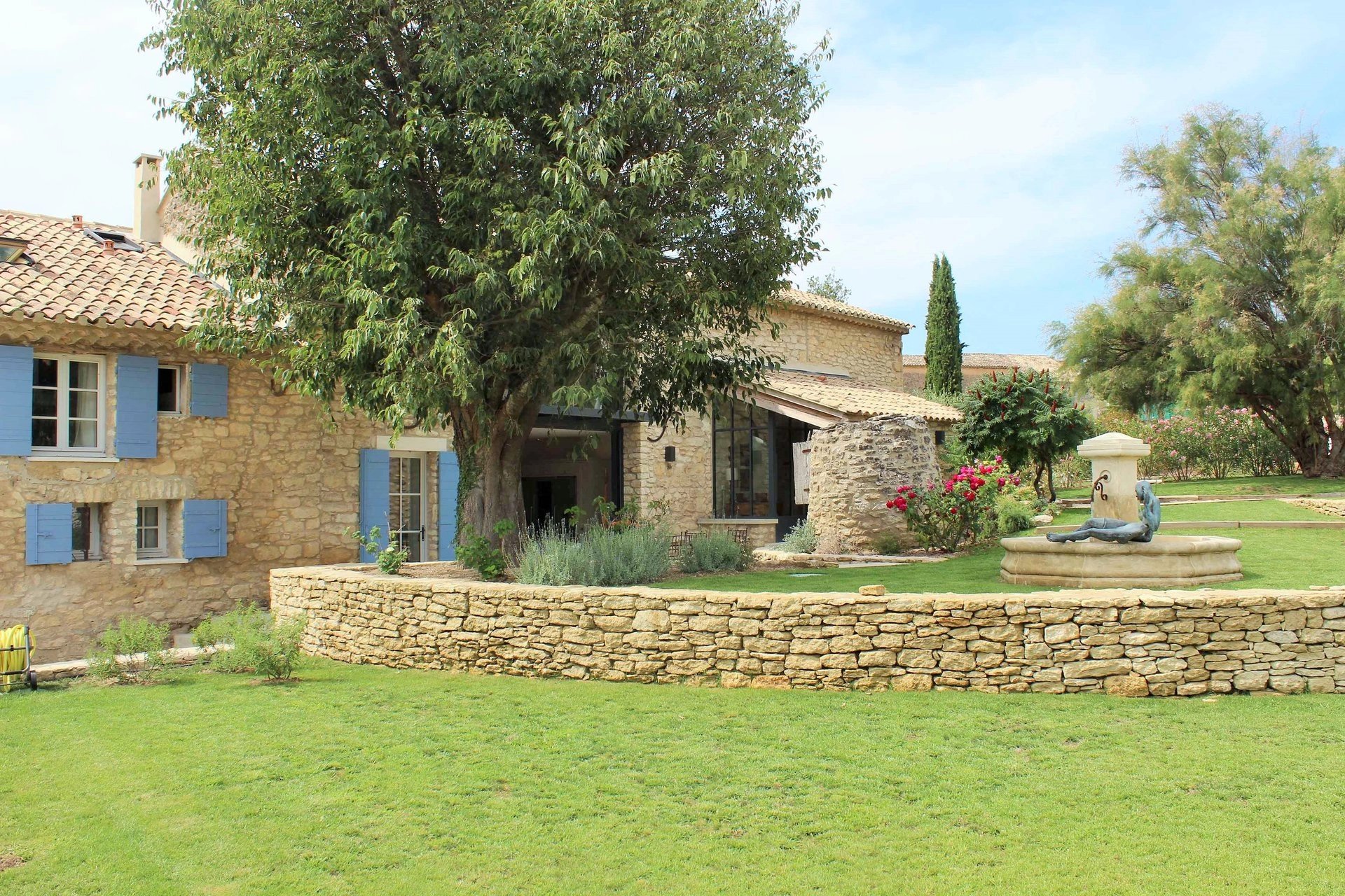 Authentique mas Provençal rénové face au Luberon, articulé autour d'une jolie cour intérieure avec fontaine. Beau parc complanté d’oliviers, de cyprès, de mûriers platanes, de lauriers, massifs de buis, rosiers......