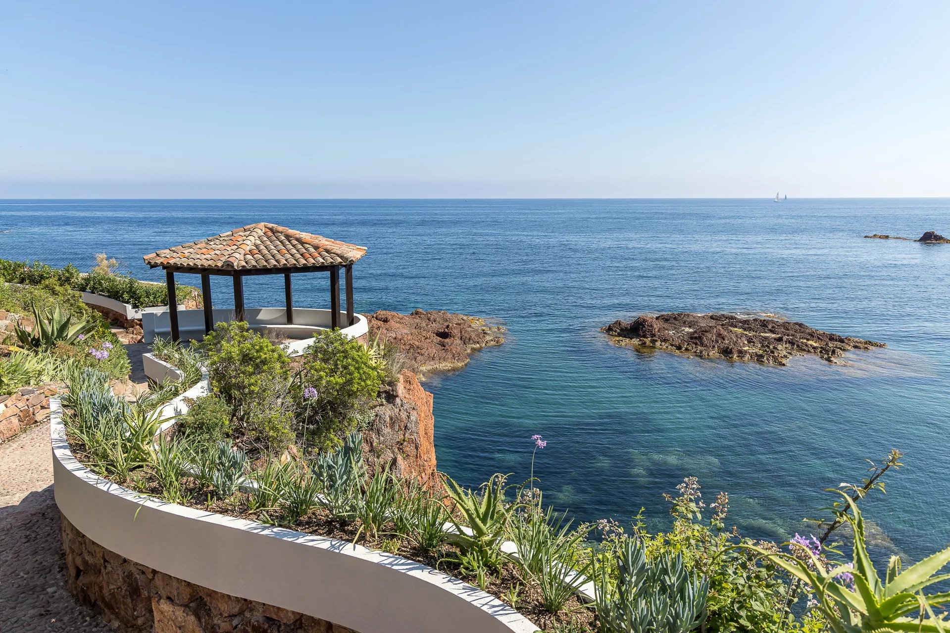 Située à quelques encablures de la Réserve Naturelle du Cap Roux, entre Cannes et Saint Raphael, exceptionnelle propriété pieds dans l'eau entièrement rénovée, composée d’une maison principale avec 3 suites,...