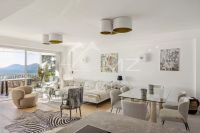 Magnifique appartement traversant en étage élevé, offrant une vue panoramique sur la Baie de Cannes. Spacieuse pièce de vie très lumineuse avec cuisine ouverte entièrement équipée donnant sur une belle...
