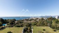 Appartement traversant de 110m2, situé au 6è et avant dernier étage d'une résidence située sur la Croisette et bénéficiant d'une vue panoramique sur la mer, la baie de Cannes et...