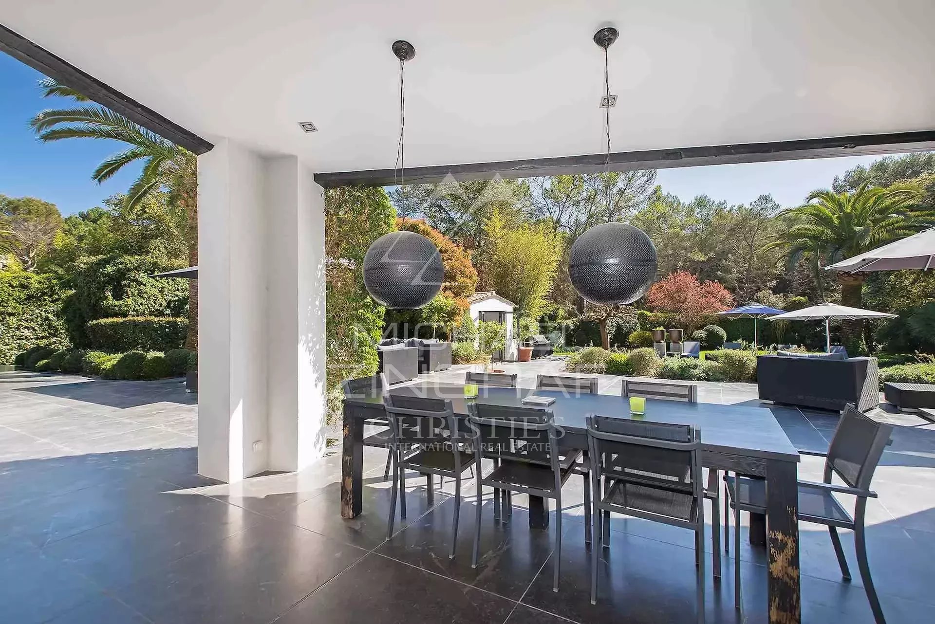 Splendide propriété d'environ 480 m² au cœur d’un magnifique jardin plat paysager dominant l’une des collines les plus prisées de Mougins, à proximité des golfs, des écoles internationales et des...