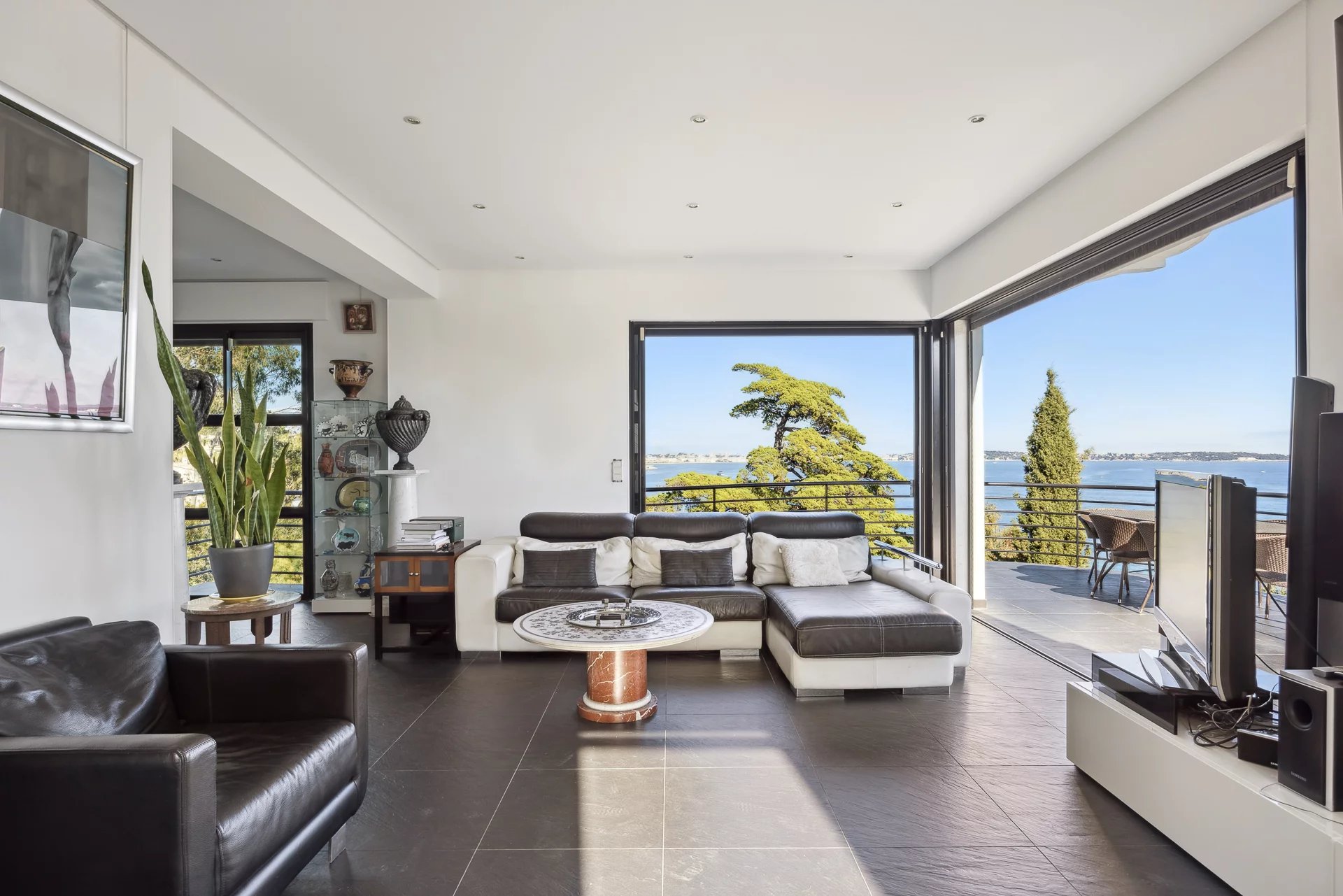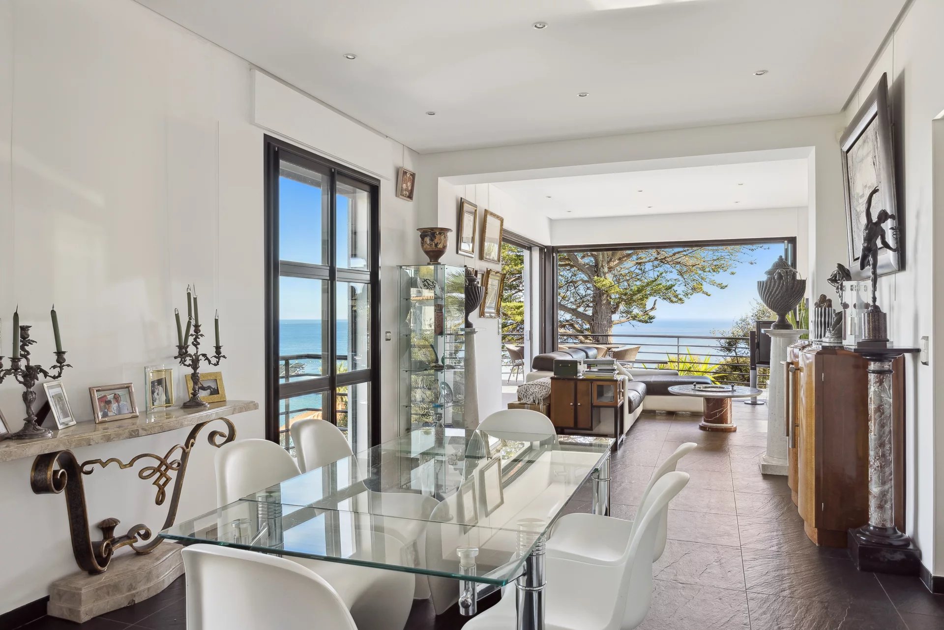 Dominant son environnement, cette villa d’exception offre une splendide vue sur la mer et le Cap d’Antibes. Dès l’entrée, le ton est donné : un escalier élégant mène à un...
