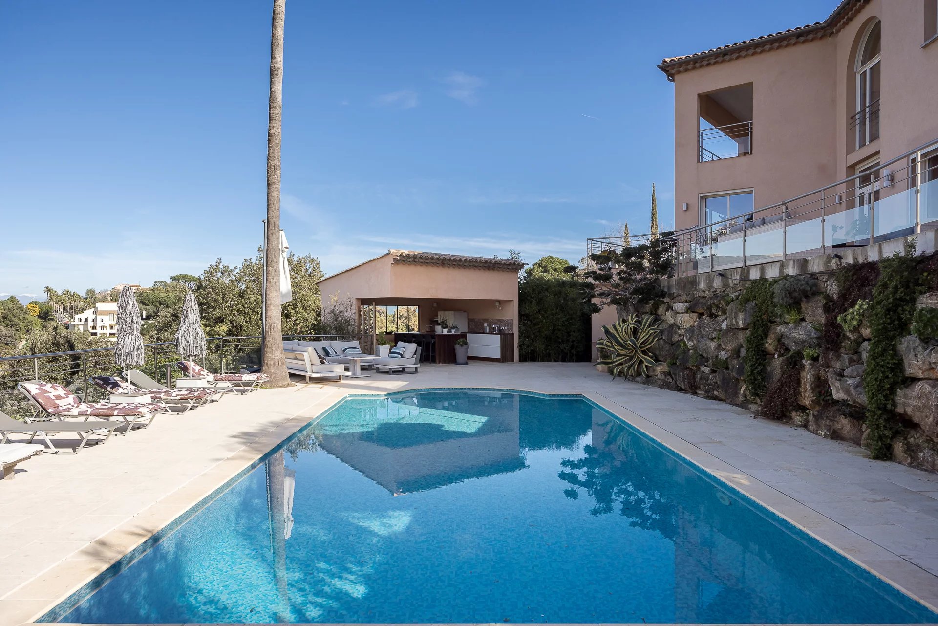 Cette lumineuse villa contemporaine idéalement située dans le secteur prestigieux de la Californie comprenant 4 chambres en-suite dont une suite parentale avec dressing bénéficie d'une vue mer panoramique exceptionnelle sur...