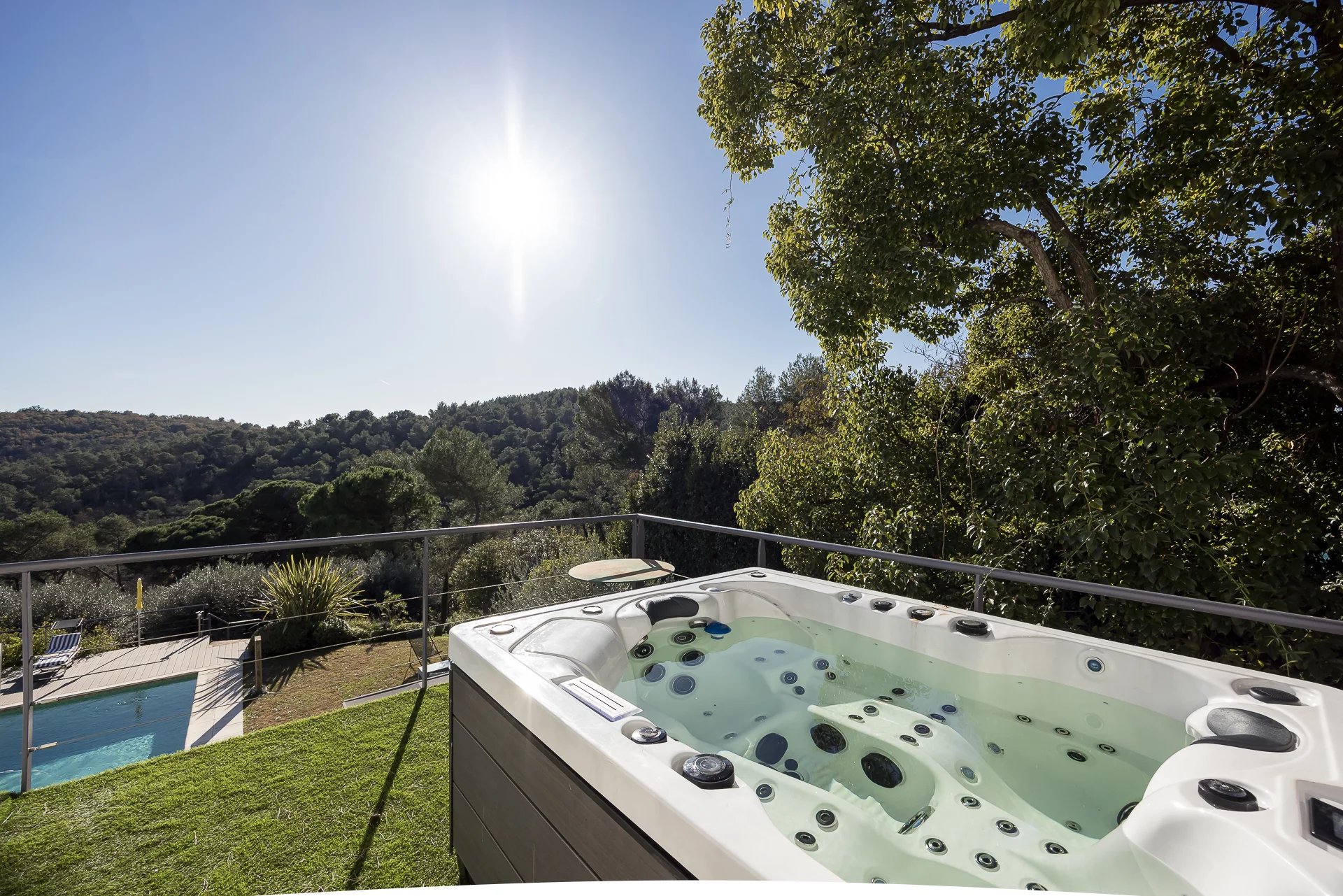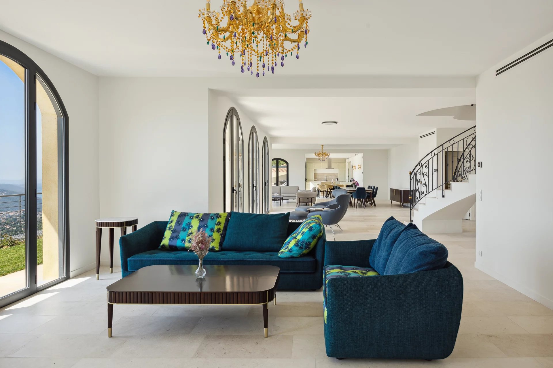 Nous vous invitons à prendre de la hauteur dans cette villa contemporaine de presque 300m² qui offre une improbable vue Panoramique sur la baie de Cannes ; le village perché...