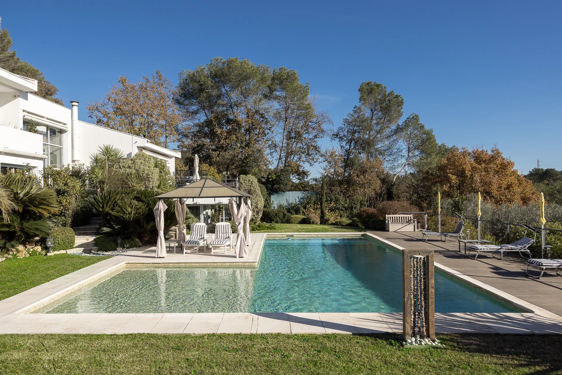 EXCLUSIVITÉ :Cette élégante provençale moderne d’environ 240 m² séduit par son cadre exceptionnel : un jardin paysager de 3300 m² planté d’oliviers, une piscine avec pool-house et une vue à...