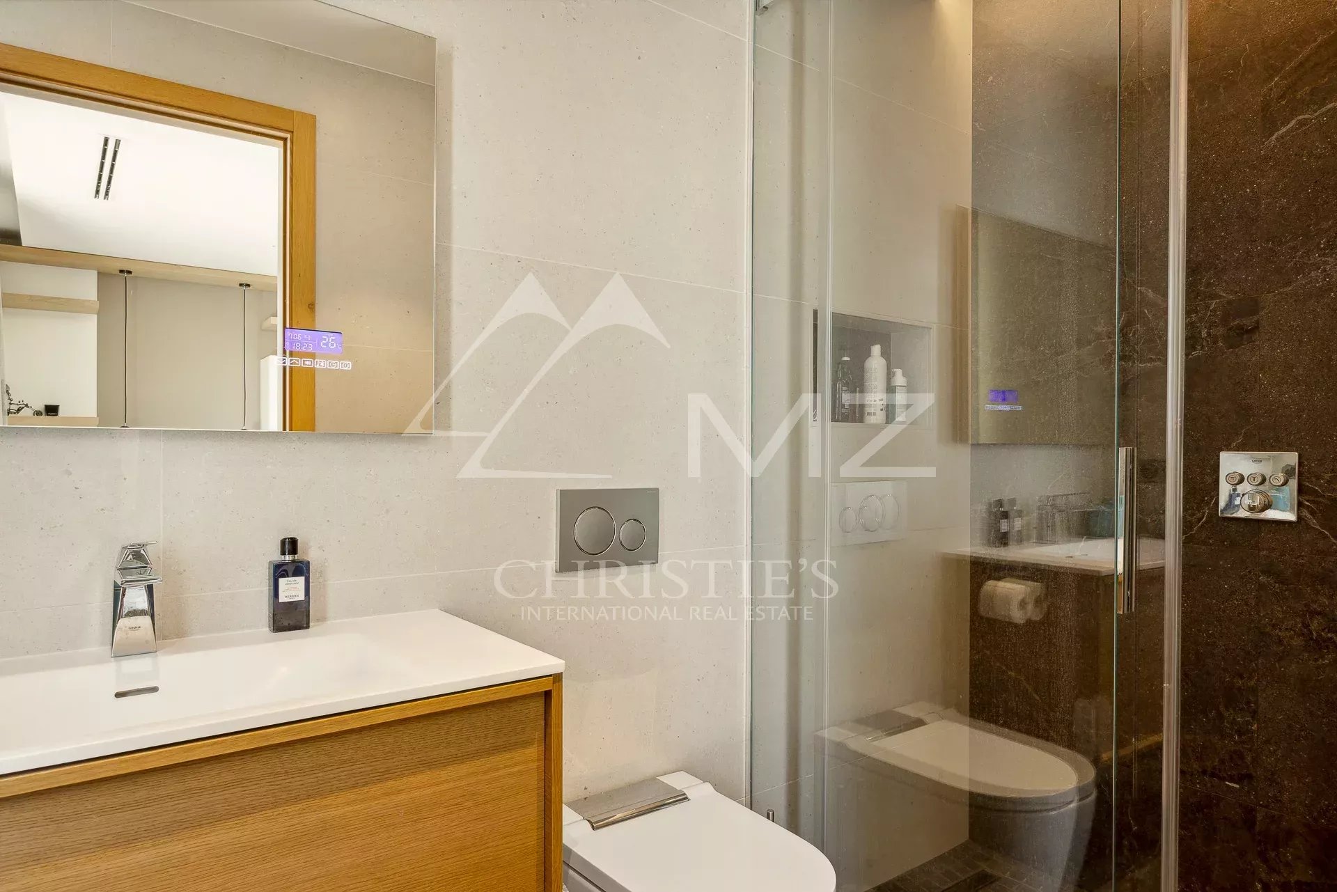 D'une superficie d'environ 600m² répartis sur 3 niveaux, elle dispose de grandes pièces de vie très lumineuses ouvertes sur la terrasse et la piscine. Les 5 chambres en suites avec salles de bains/douches offrent un confort optimal à ses occupants.