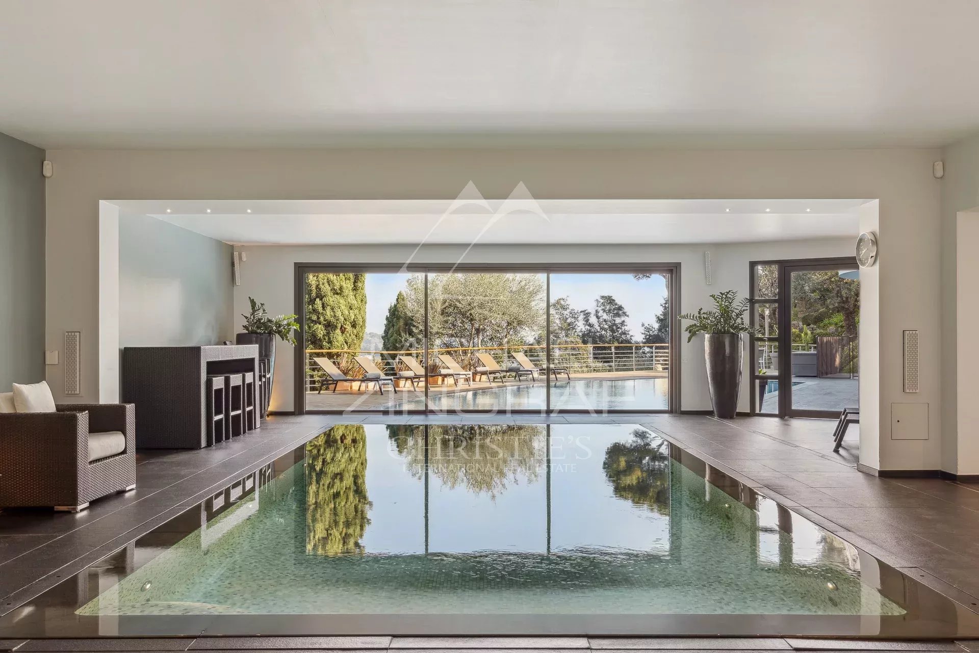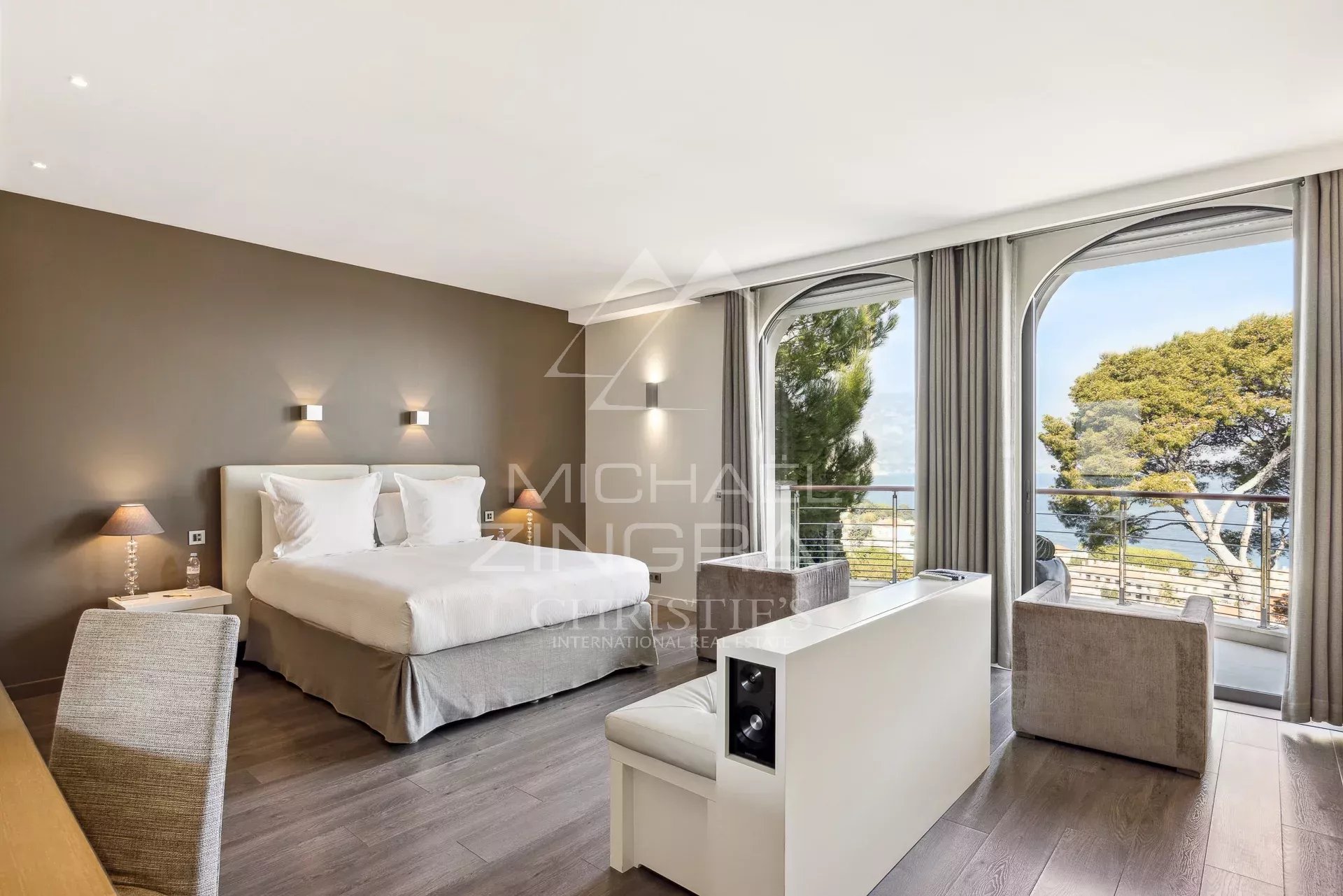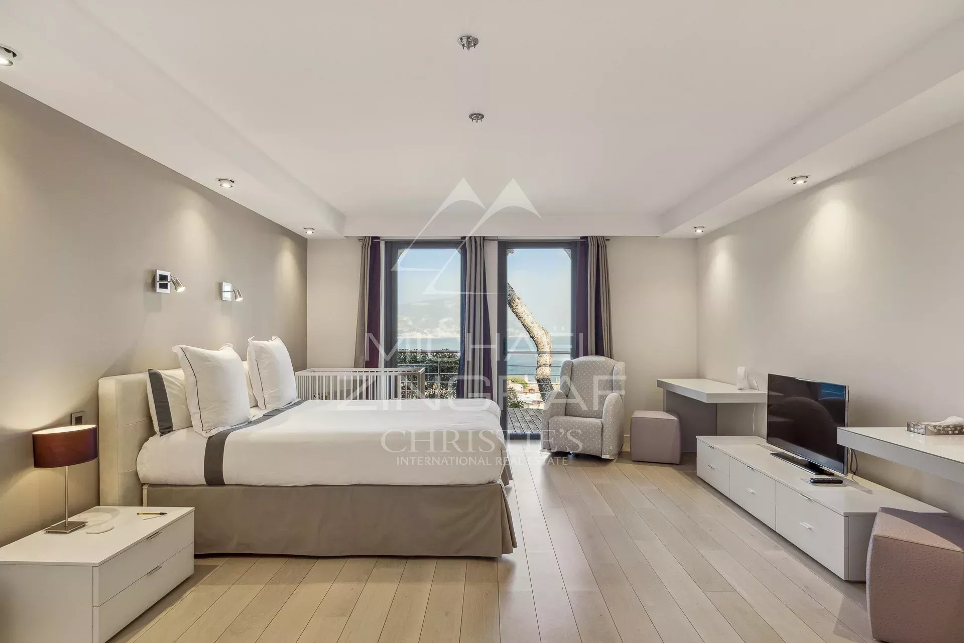 Située dans l’un des endroits les plus exclusifs de la Côte d’Azur, cette villa moderne de 1 200 m² entourée d’un jardin paysager de 8 000 m² offre une vue imprenable sur la Méditerranée. Pensée pour des séjours en toute sérénité, elle est disponible avec un service hôtelier complet incluant majordome, chef privé et personnel dédié, pour que chaque instant soit synonyme de confort et d’élégance.