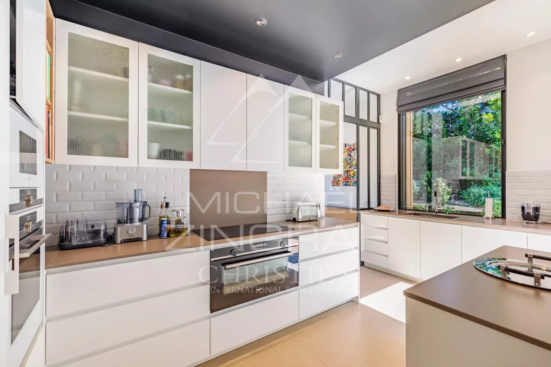 Conçue dans un style contemporain, la propriété séduit par ses volumes généreux et ses vastes terrasses ouvertes sur un magnifique jardin paysager. Réalisée avec des matériaux et équipements haut de gamme, la villa dispose également d'une piscine chauffée et d'un garage pouvant accueillir deux véhicules.