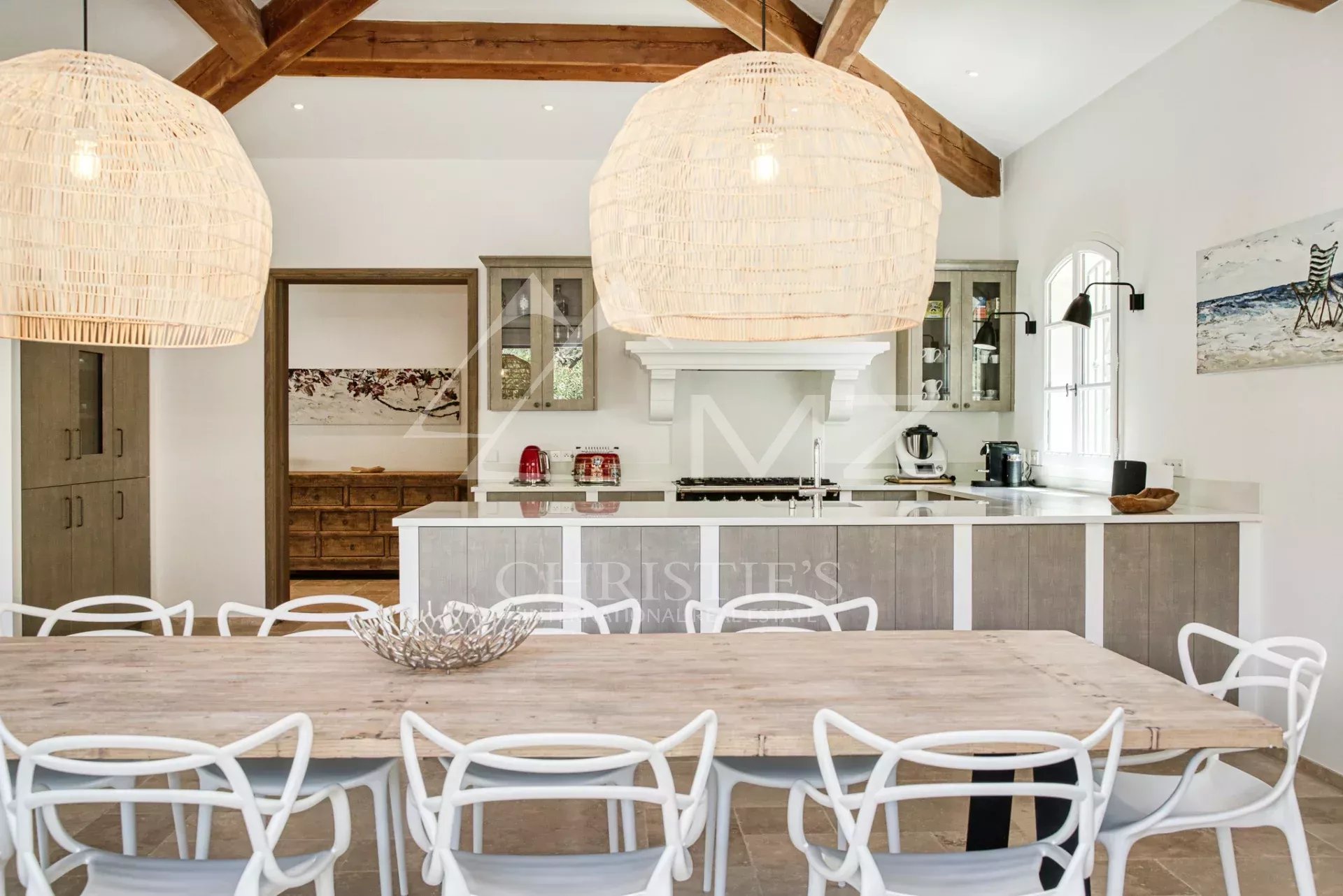 Parfaitement située, à quelques minutes du centre ville et des plages de Saint Tropez, cette villa contemporaine offre de jolies pièces de vie avec de grande baies vitrées ouvertes sur la piscine chauffée et le jardin arboré.