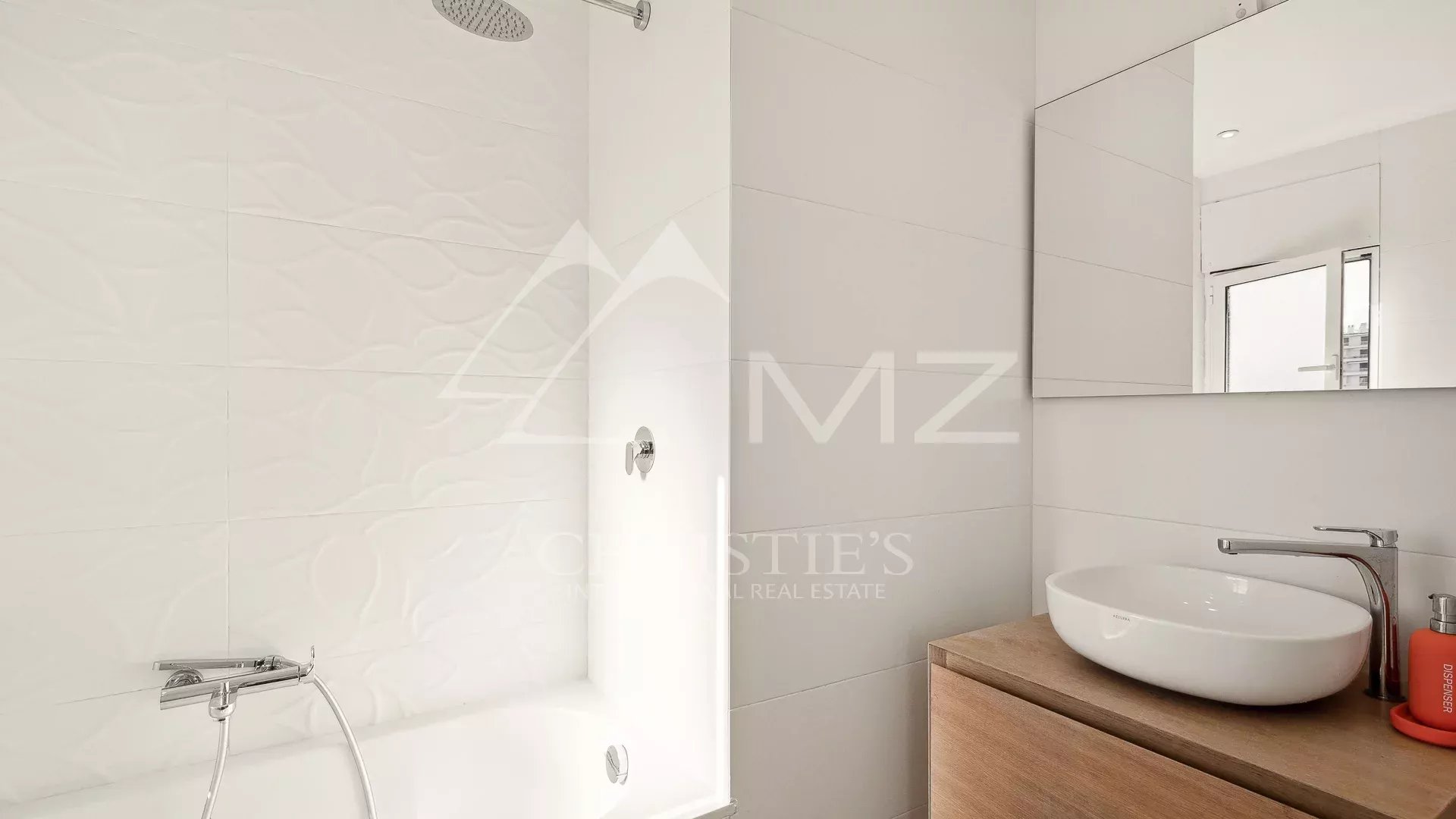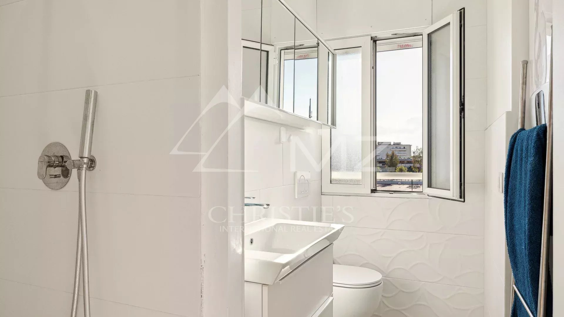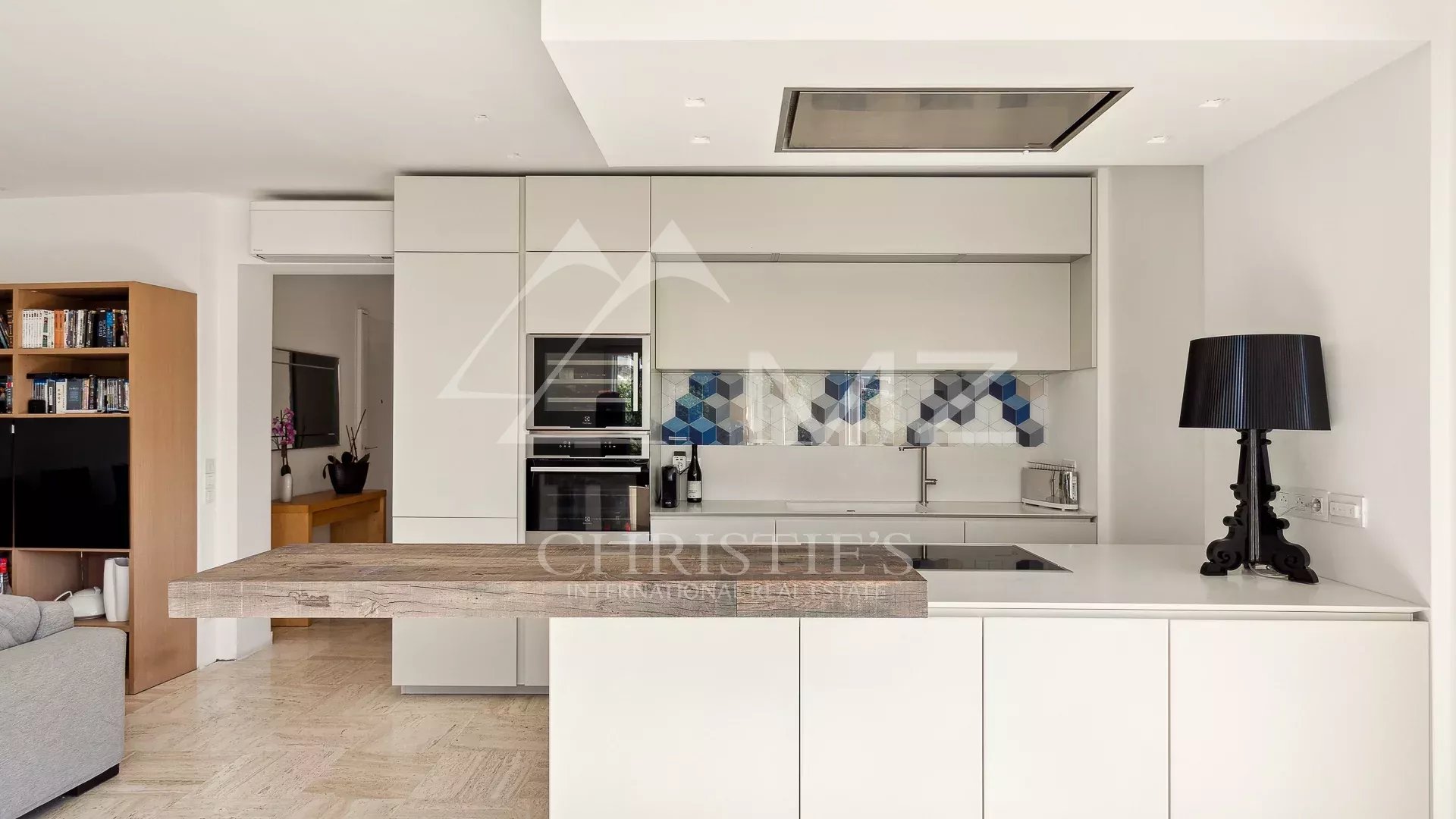Le magnifique séjour/cuisine d'environ 45 m2 donne sur un balcon d'environ 16 m2, offrant ainsi un espace de vie confortable sans aucun vis-à-vis. L'appartement dispose également de deux chambres dont une en suite avec salle de bains et dressing, ainsi qu'un bureau.
